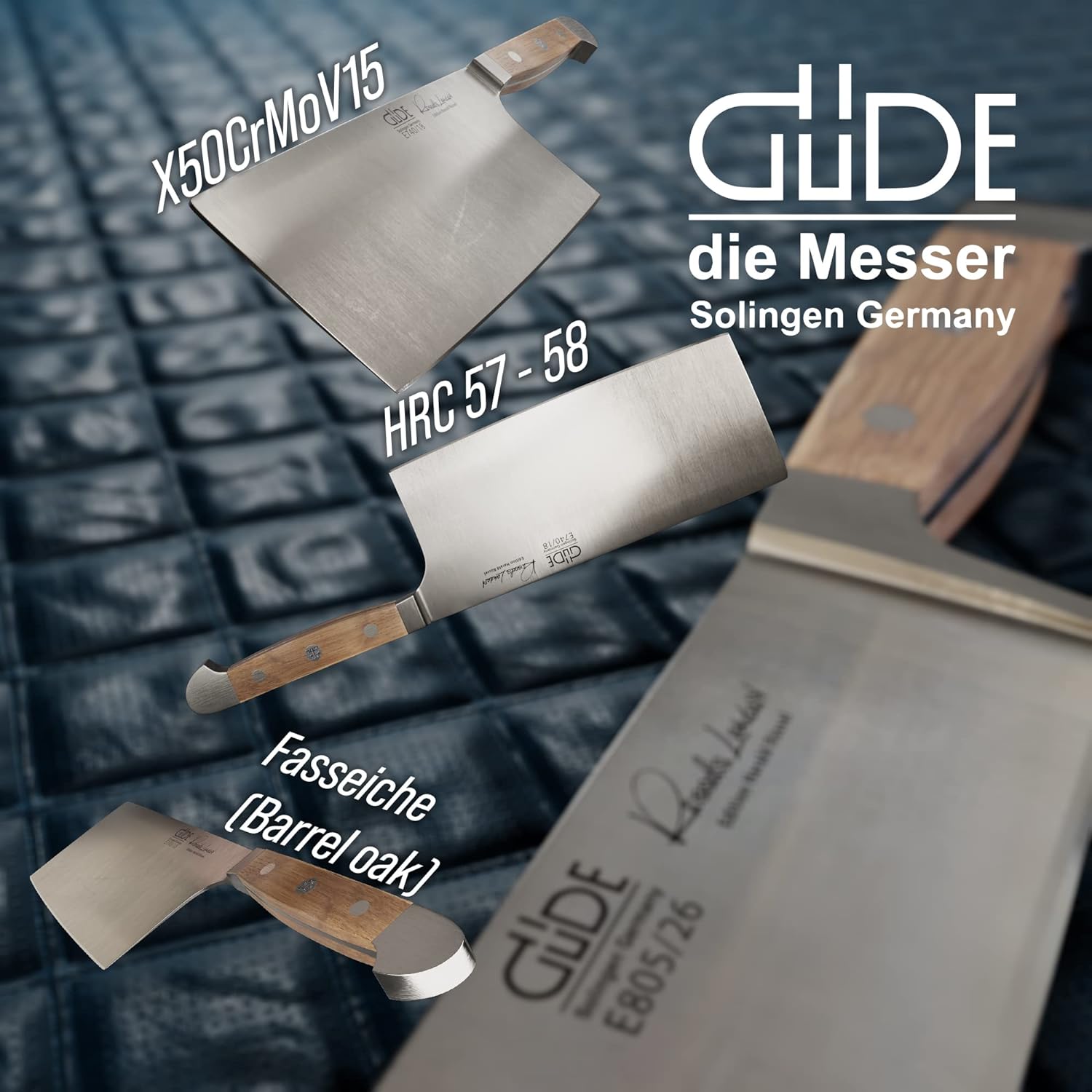 - Das Hackmesser von GÜDE ist für grobe Stücke bestens geeignet. Kleine Knochen, Knorbel, Kräuter, Gemüse und vieles mehr sind für das Küchenbeil kein Problem. Schneiden, hacken, zerteilen, klopfen, plätten sind selbstverständlich für das Profi