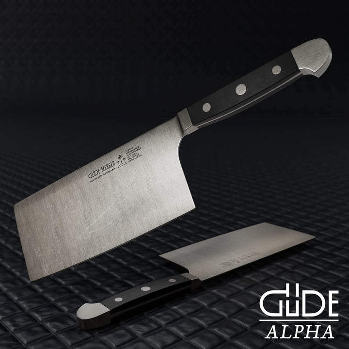 - Die Alpha Serie bietet die grösste Modellvielfalt der Marke GÜDE aus Solingen. Der unverwechselbare Doppelkropf ist das Markenzeichen der GÜDE Serie. Der feinpolierte schwarze Griff besteht aus robustem Hostaform und ist sehr pflegeleicht