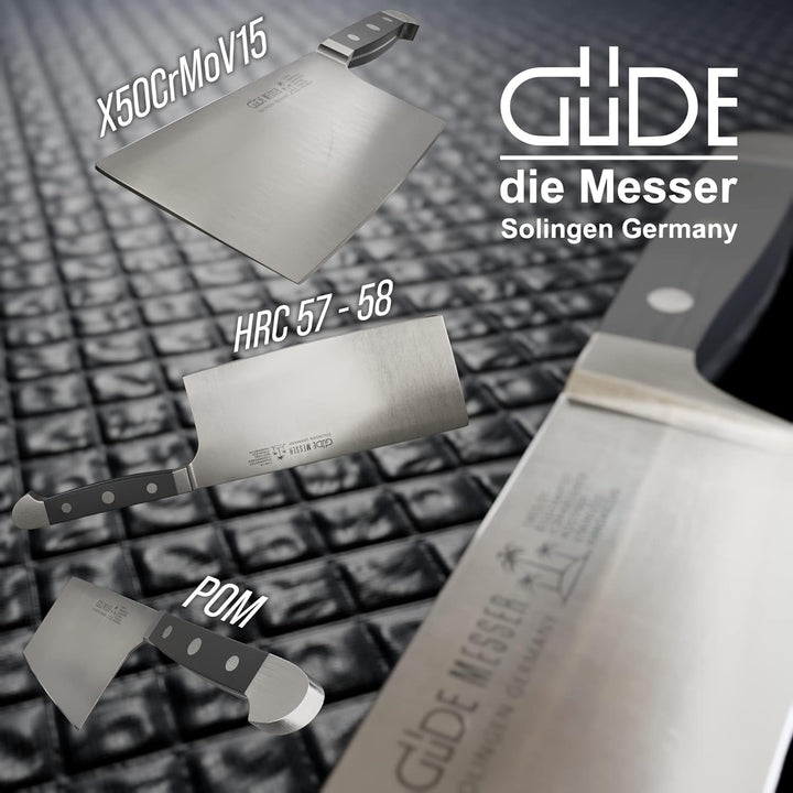 - Als einer der letzten deutschen Messerhersteller setzt GÜDE auf perfekte Handarbeit. Das Messer wurde in bis zu 55 Arbeitsgängen nach traditioneller Art hergestellt. Zum Einsatz kommt der optimierte eisgehärtete Chrom-Vanadium-Molybdän Messerstahl