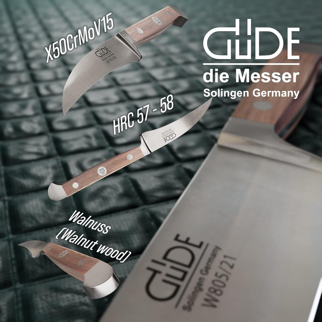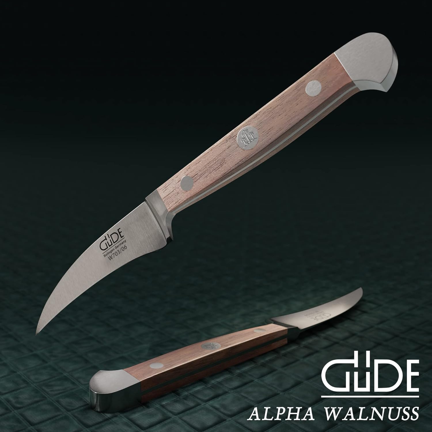 - Die GÜDE Alpha Walnuss Serie besticht seine Einzigartigkeit durch das wunderschönen Walnussholz. Das Holz ist ein sehr hartes Holz und perfekt für einen robusten und langlebigen Griff geeignet. Die Maserungen machen jedes Messer zu einem Unikat