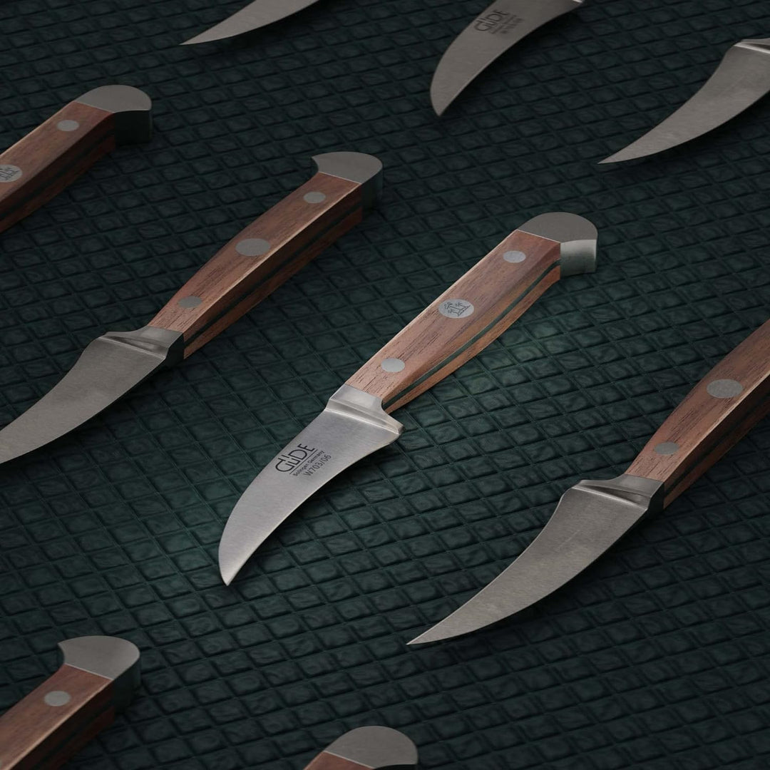 - Das kleine Schälmesser von GÜDE ist ein perfektes Küchenwerkzeug zum Tournieren. Besondere Schältechniken sind Dank der gebogenen Klingen kein Problem. Das geschmiedete Tourniermesser wird ebenso in der dekorativen Lebensmittelverarbeitung eingesetzt