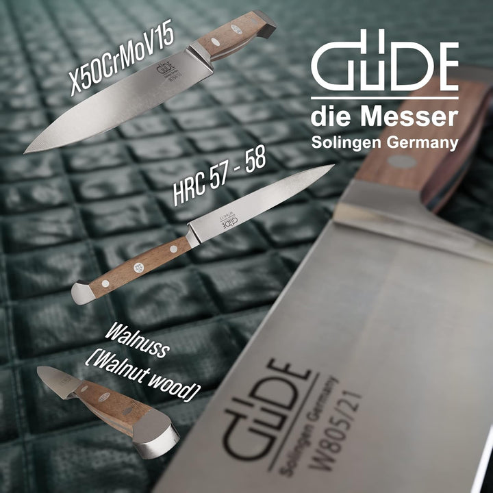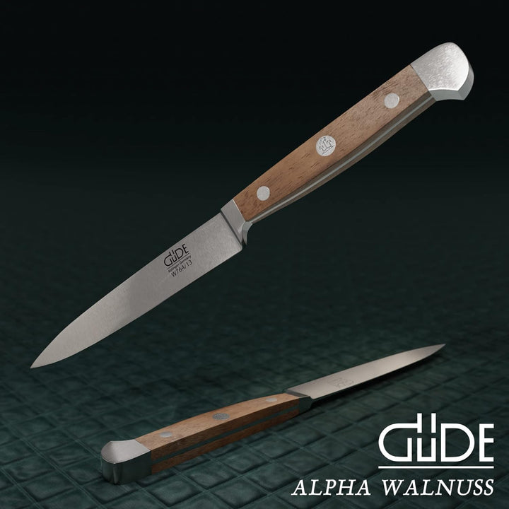 - Die GÜDE Alpha Walnuss Serie besticht seine Einzigartigkeit durch das wunderschönen Walnussholz. Das Holz ist ein sehr hartes Holz und perfekt für einen robusten und langlebigen Griff geeignet. Die Maserungen machen jedes Messer zu einem Unikat