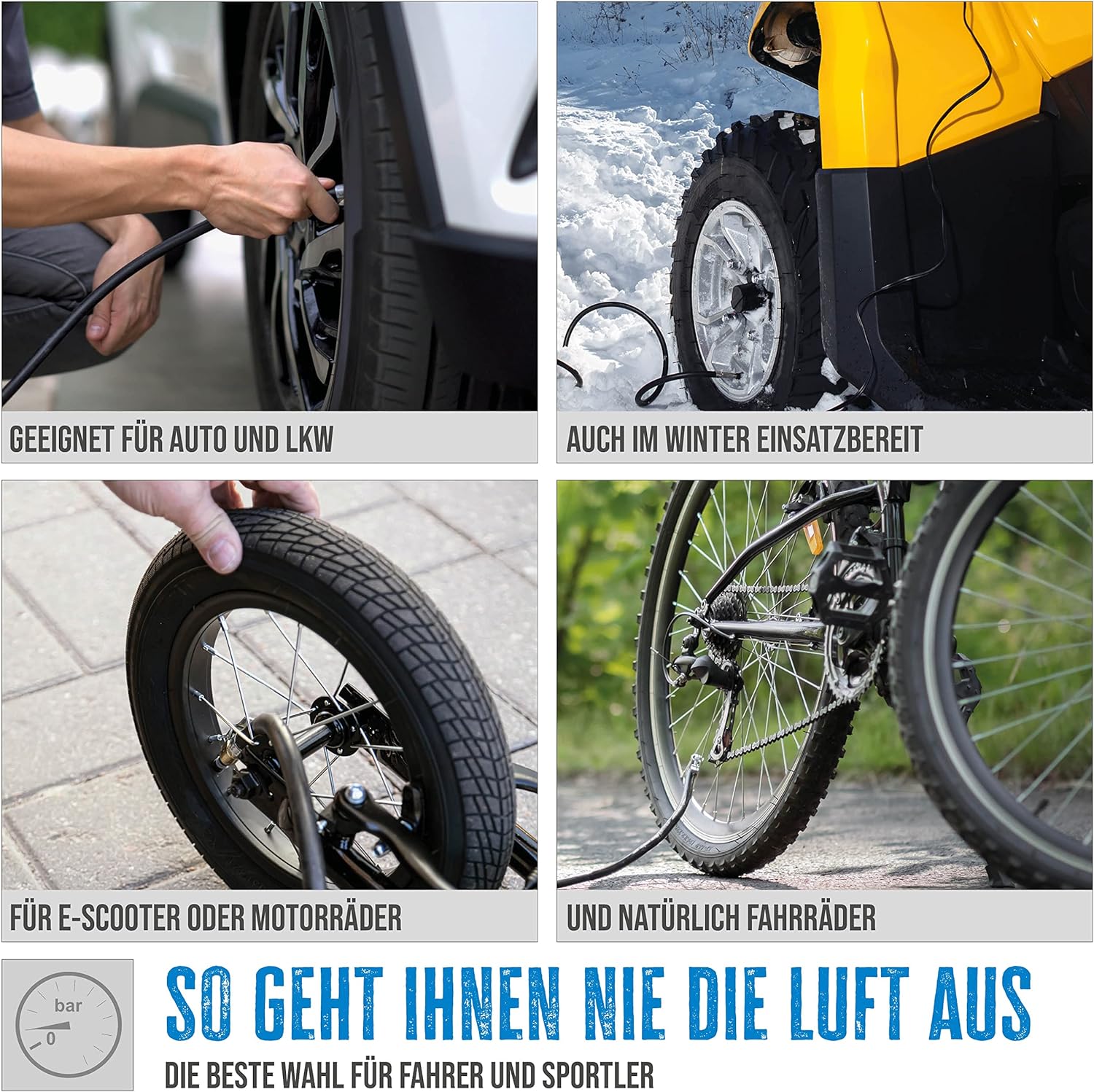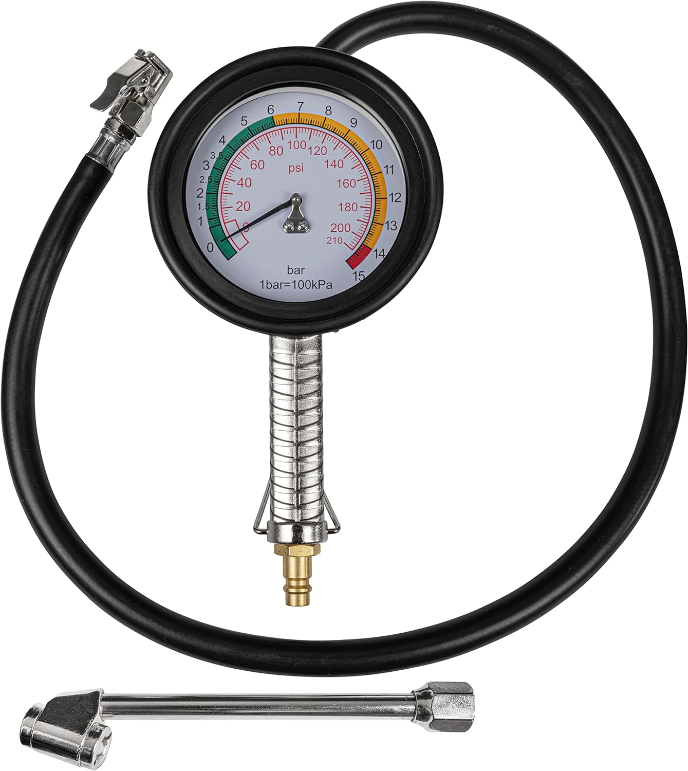- Der Reifenfüller verfügt über einen grossen Manometer.