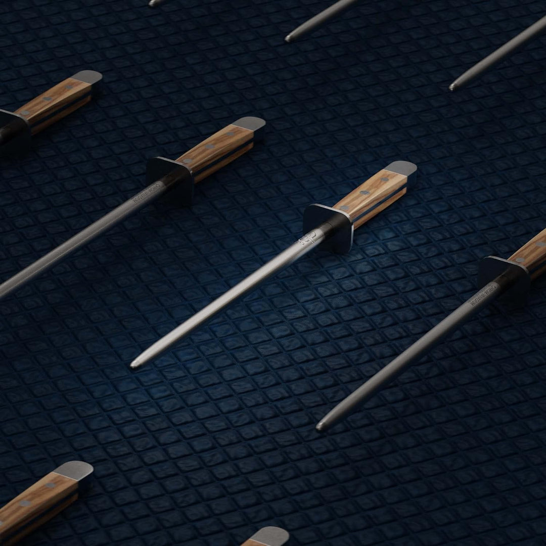 - Durch regelmässiges Nachschärfen mit einem Wetzstahl erhalten Sie die extreme Schärfe der GÜDE Messer aufrecht. Ziehen Sie Ihre Messer regelmässig mit dem Wetzstab ab und die Freude an einem scharfen Messer wird Sie nicht verlassen