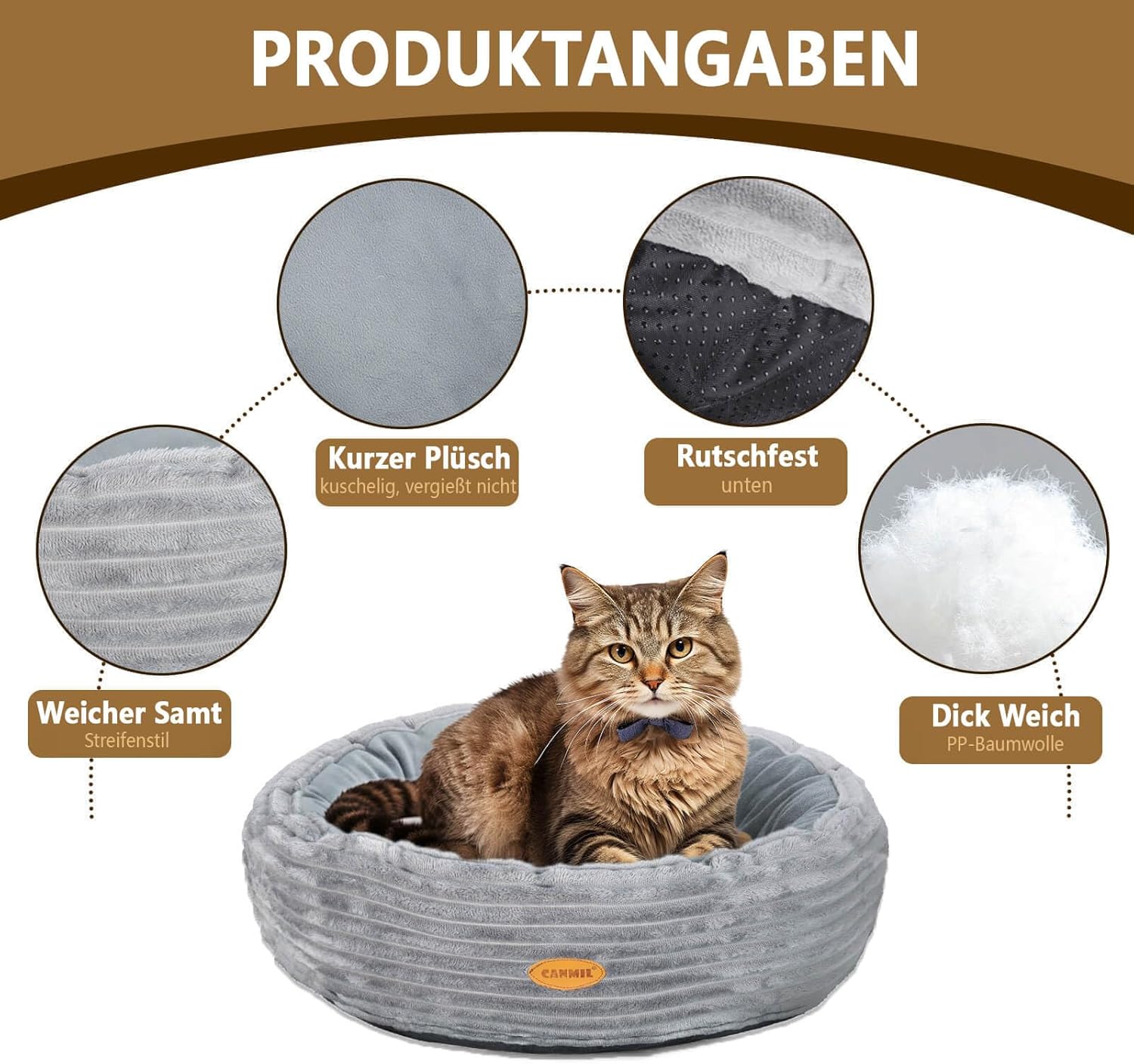 - Modisches Design: Das katzenbett hat ein rundes Donut-Design mit horizontalen Streifen auf der Aussenseite, das einfach und modisch ist und zu verschiedenen Einrichtungsstilen passt.