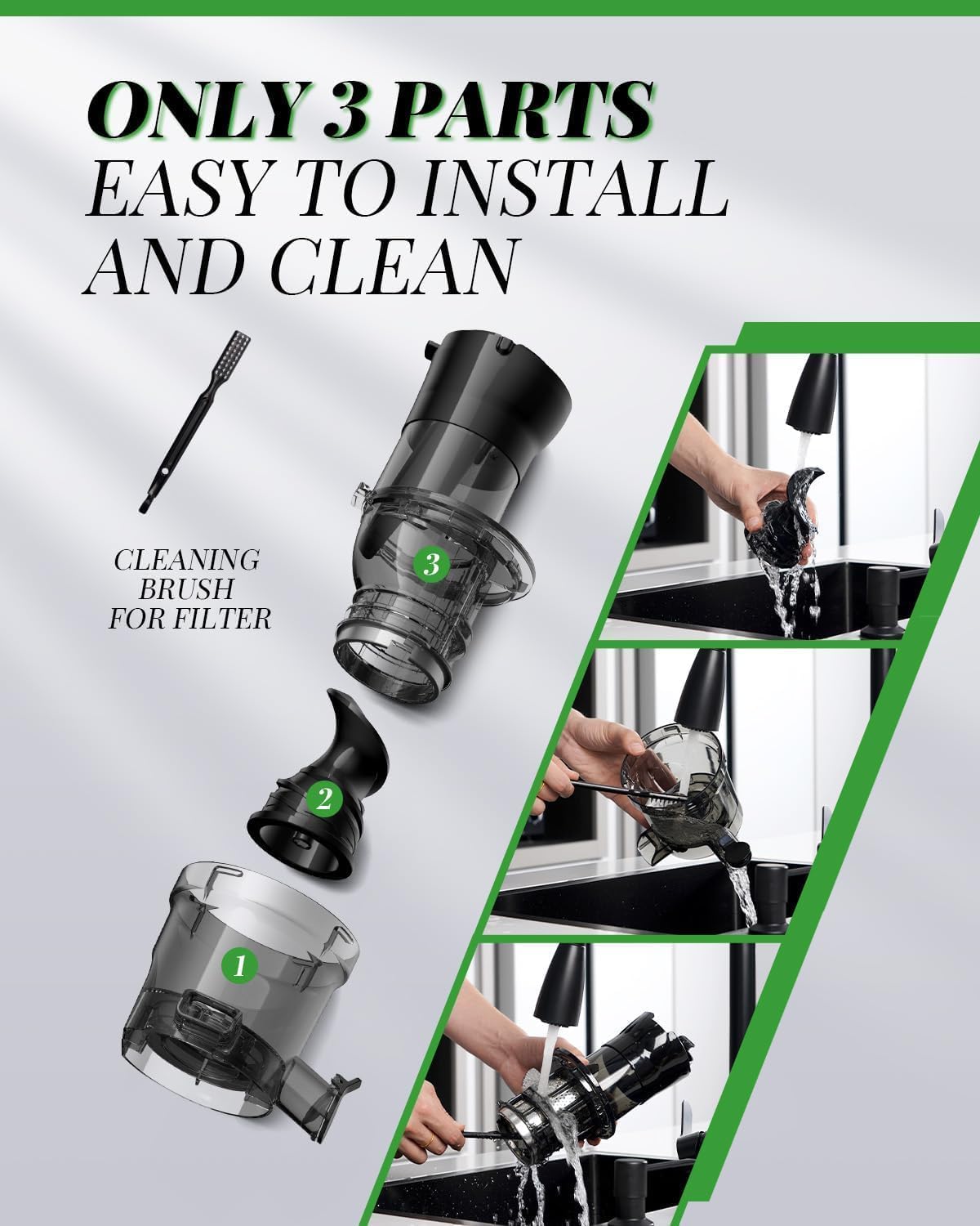 - Einfach Zu Reinigen und Zusammenzubauen: Der entsafter slow juicer besteht aus nur drei abnehmbaren teilen, was den reinigungs- und zusammenbauprozess schneller und einfacher macht. Mit der mitgelieferten bürste ist die reinigung ein kinderspiel.