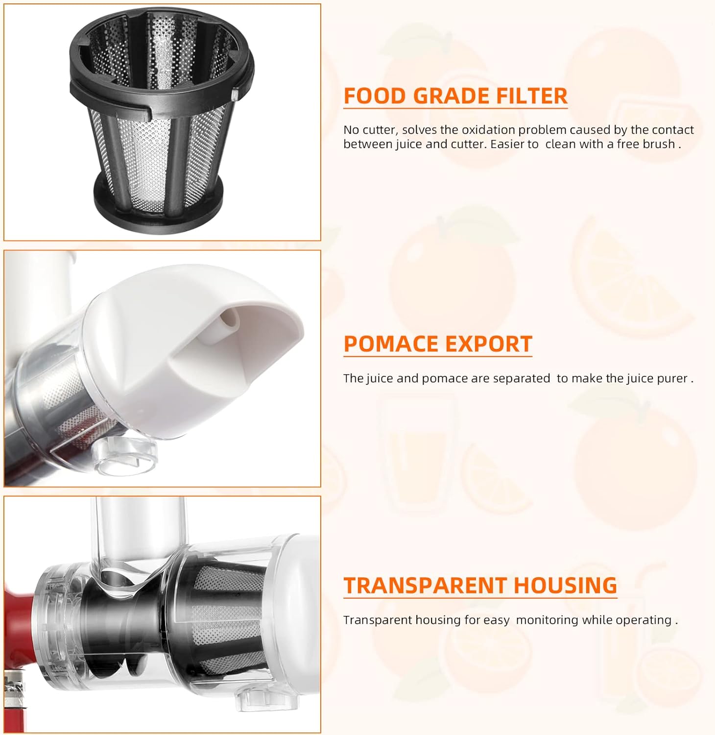 - 🍎【Maximale Nährstoffe】Das verbesserte Spiralsystem - 7-Segment-Spiralen öffnen jede Zelle für maximale Saftausbeute. Kein Hinzufügen von Wasser wie bei anderen Entsaftern. Kein manuelles Filtern des Tresters erforderlich. Geniessen Sie ab