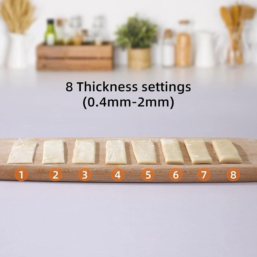 - Multifunktional: Nudelroller, 13,2 cm grosse Nudelblätter mit 8 Dickeneinstellungen, um verschiedene Dicken für verschiedene Rezepte herzustellen. Fettuccine-Schneider und Spaghettischneider separat für herzhafte Fettuccine-Nudeln und klassische
