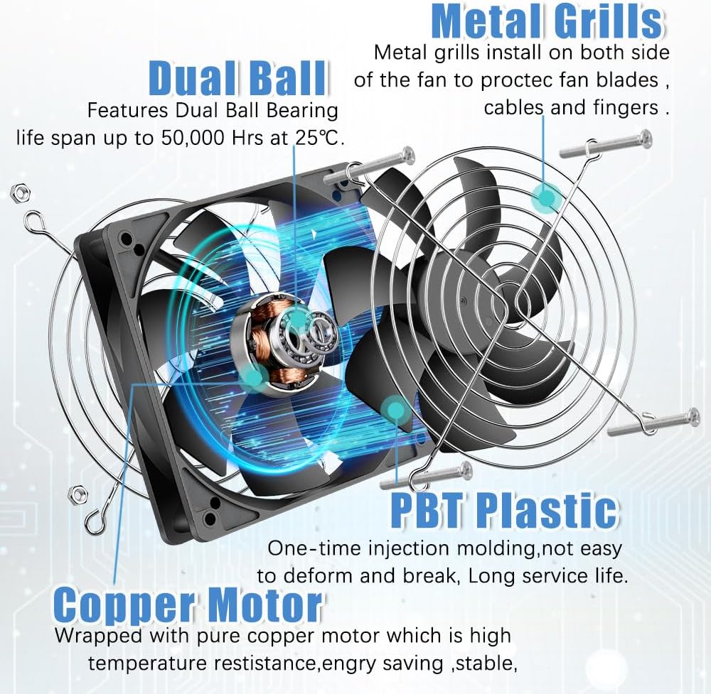 - Komplettes Zubehör: 120mm x 120mm x 25mm Lüfter; Lüfterdrehzahlcontroller, 1*Metallgrill , Schraube ;