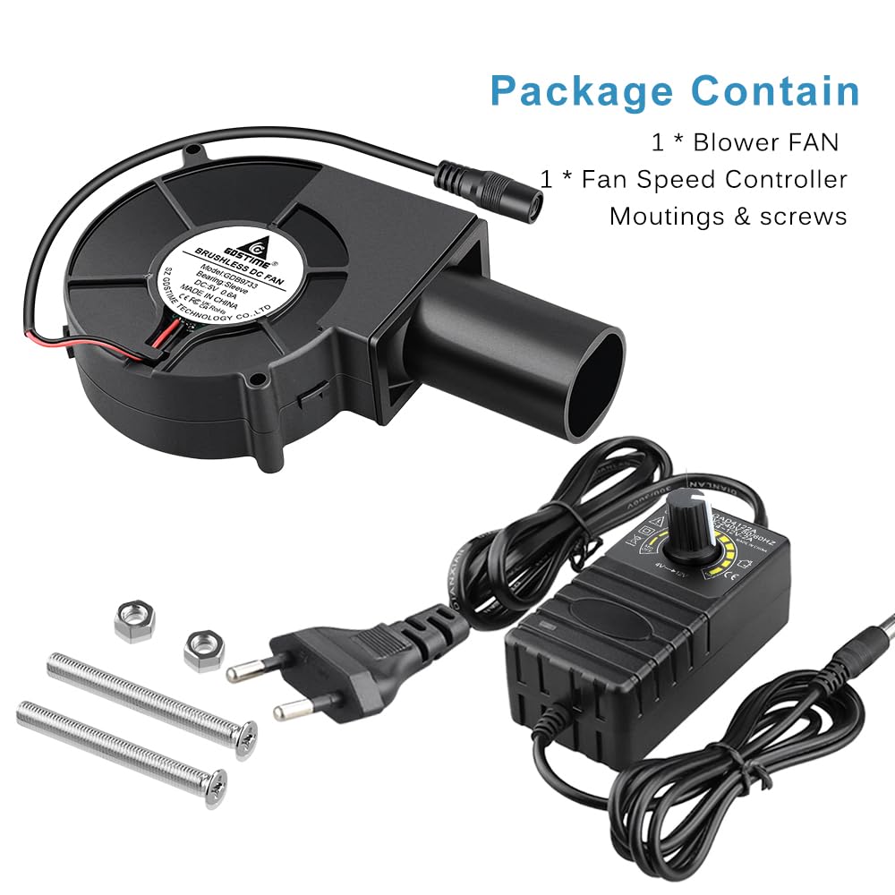 - Paket enthalten :1* 12v 97mm x 33mm Gebläse Lüfter ;1* Geschwindigkeitsregler mit EUStecker; Düsen & Schrauben