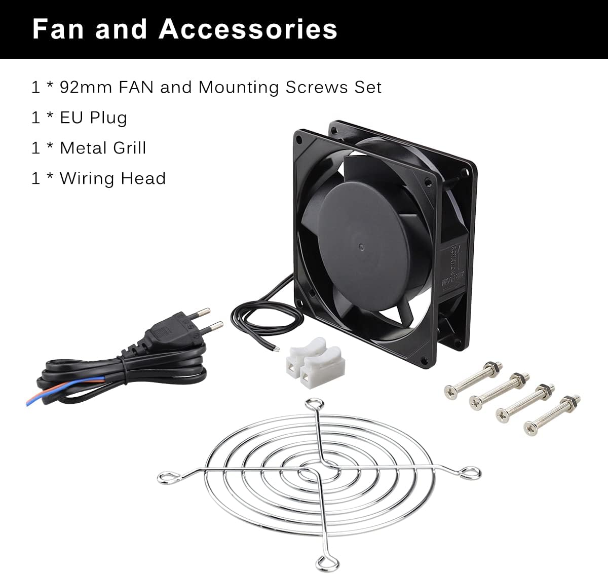 - Paketliste: 1* 92mm Lüfter ; 1*Metallgrill ; 1* EU Power Plug;1*Verdrahtungskopf ; Schraube ;