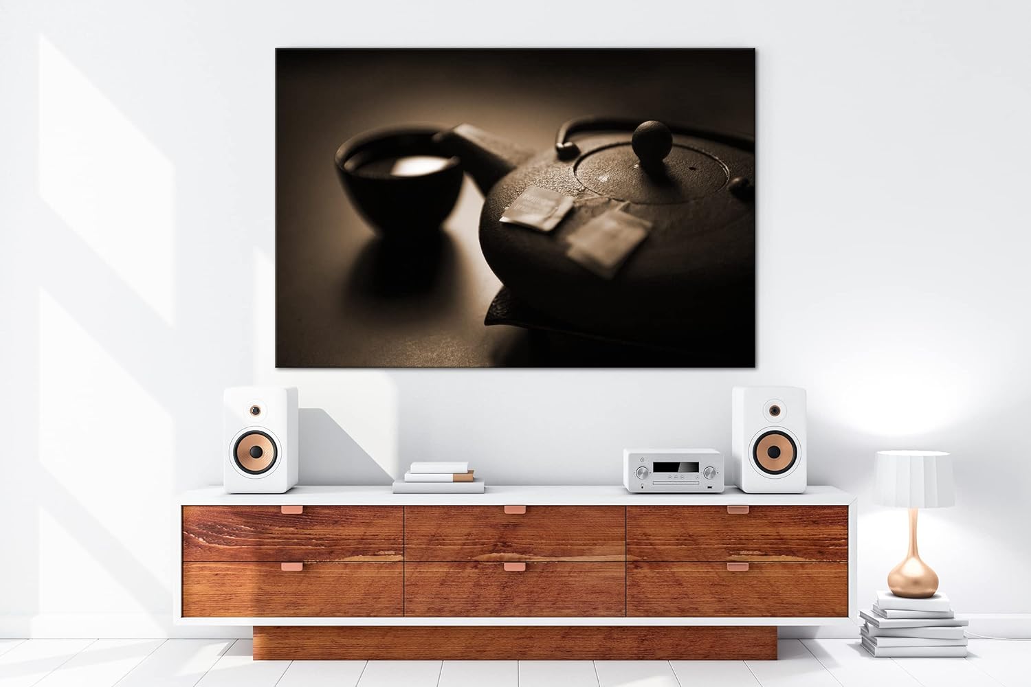 deyoli gebrühter Tee in der Teekanne Effekt: Sepia, Format: 80x60 als Leinwandbild, Motiv fertig ger