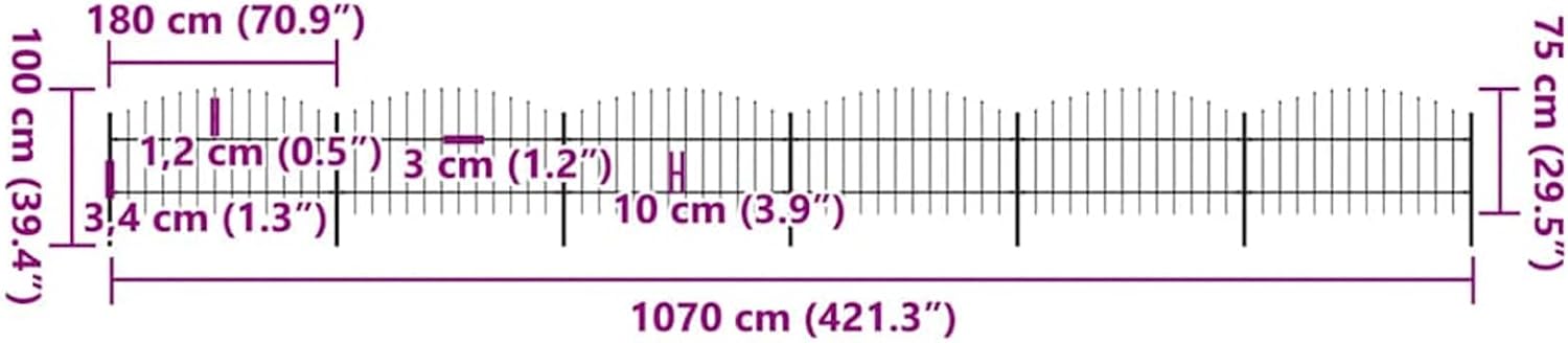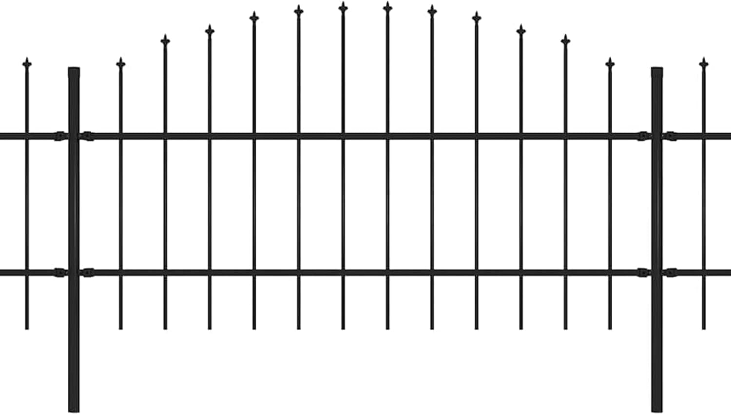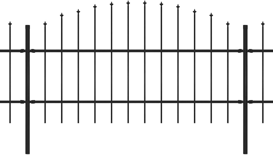 - Farbe: Schwarz Material: Stahl Gesamtlänge: 10,2 m Höhe: (0,75-1) m Mit dekorativen Speerspitzen