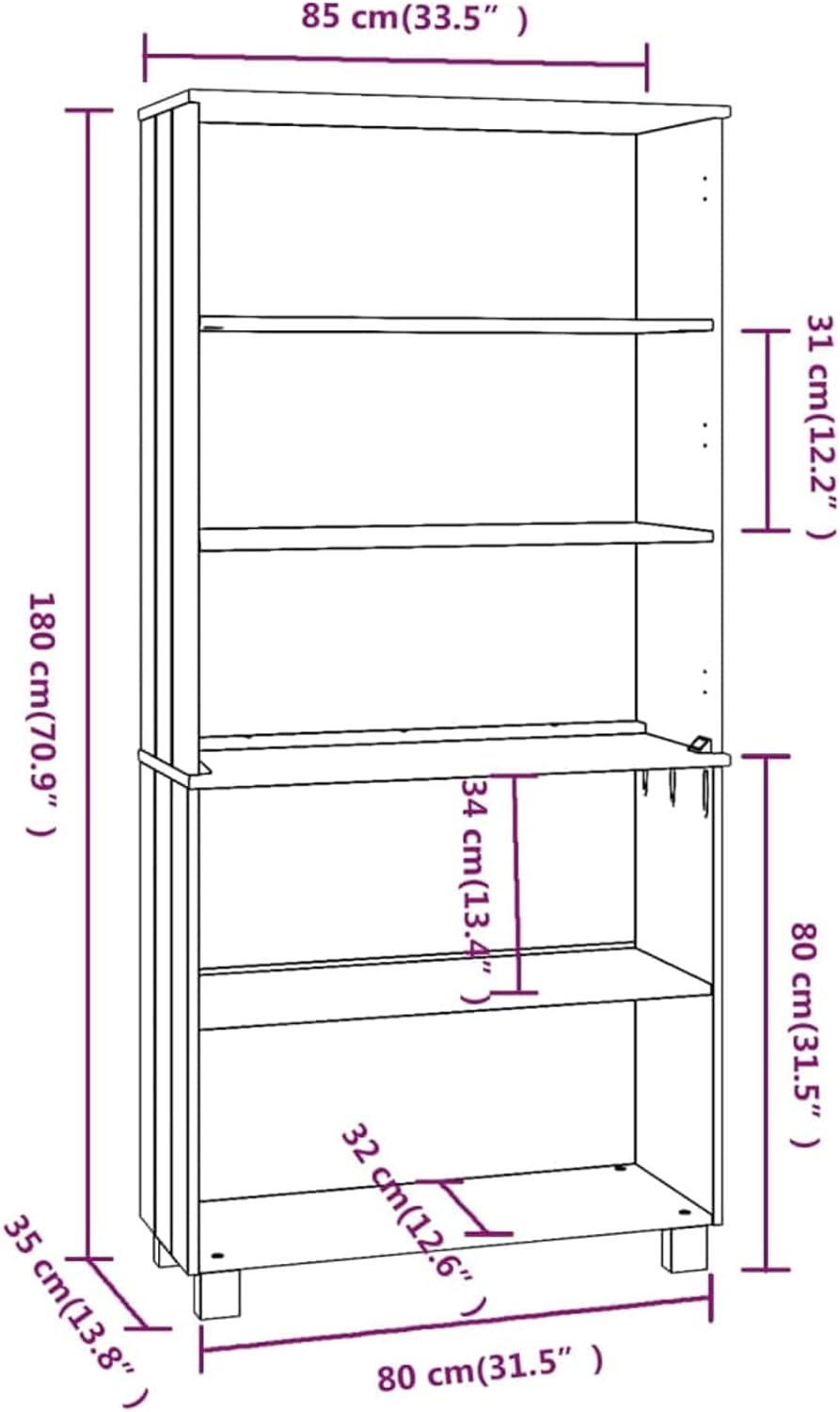 - Gesamtabmessungen: 85 x 35 x 180 cm (B x T x H)