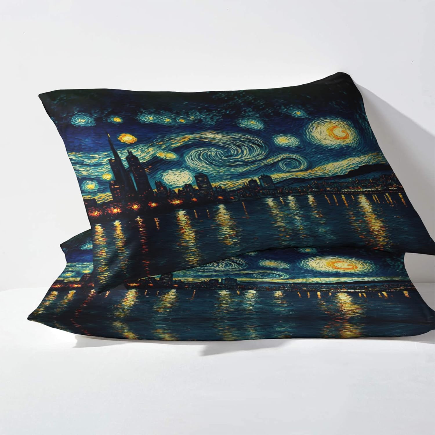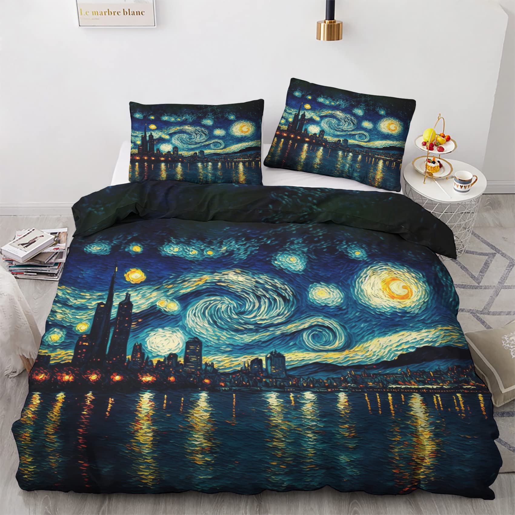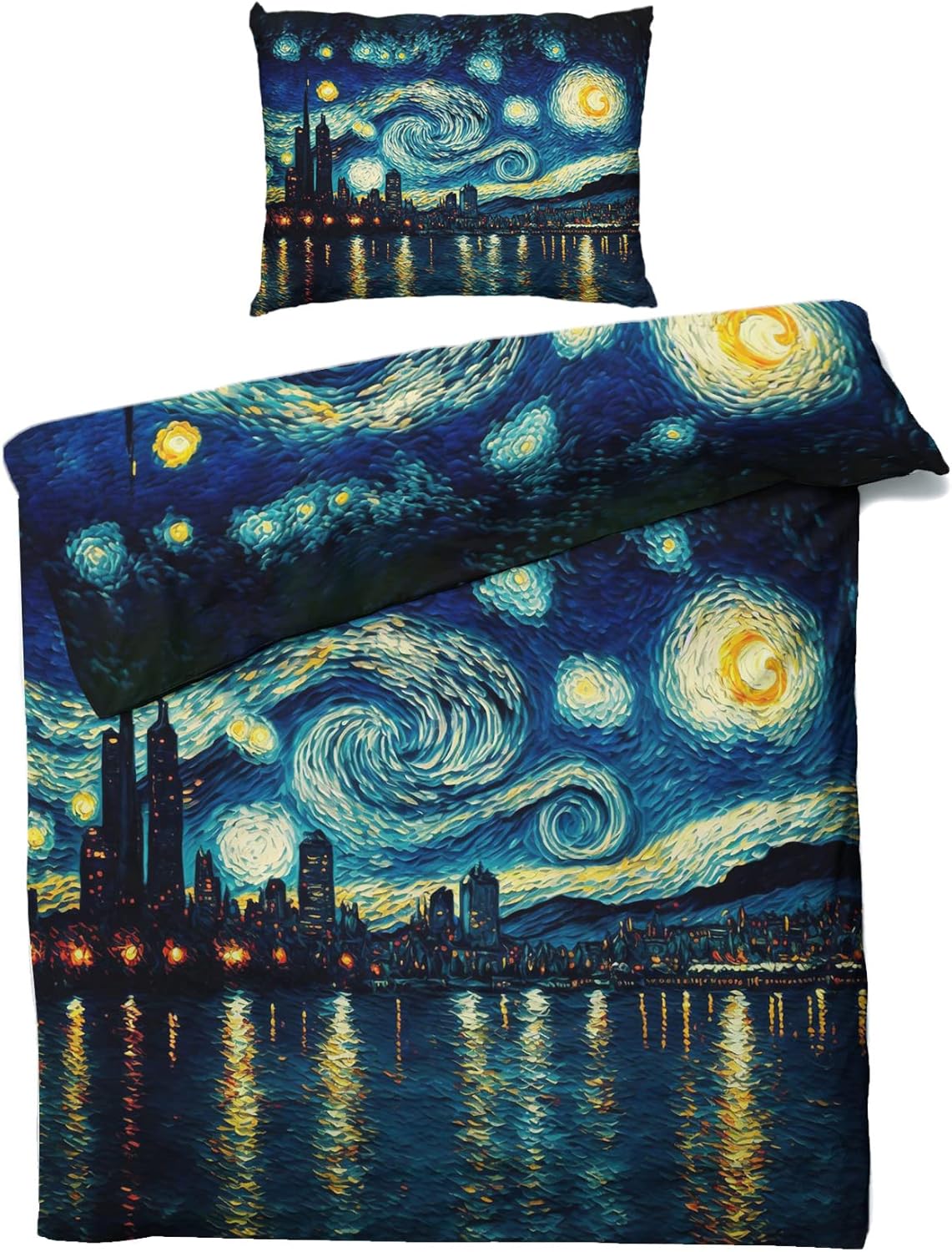 GEDAEUBA Sommer Bettwäsche 135x200 Van Gogh Sternennacht - Ölgemälde Bettbezug 135 x 200 2er Set, We