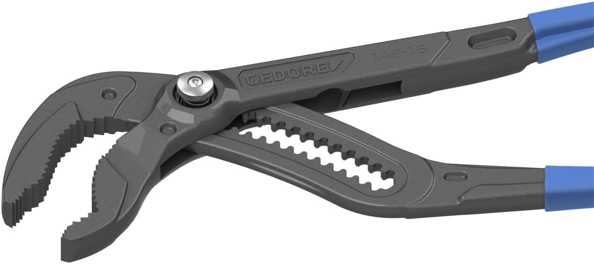 - Lange Zangenbacken, Versetzte Greifflächen, selbstklemmend an Muttern und Rohren, GEDORE Chrom-Vanadium-Sonderstahl, Zähne induktiv gehärtet