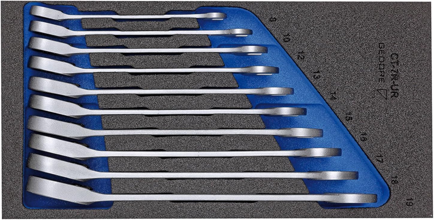 - Das Werkzeug liegt verrutschsicher in seinem Nest und ist vor Beschädigungen geschützt. 1500 CT1-7 UR Satz Maulschlüssel mit Ringratsche in Check-Tool-Modul.
