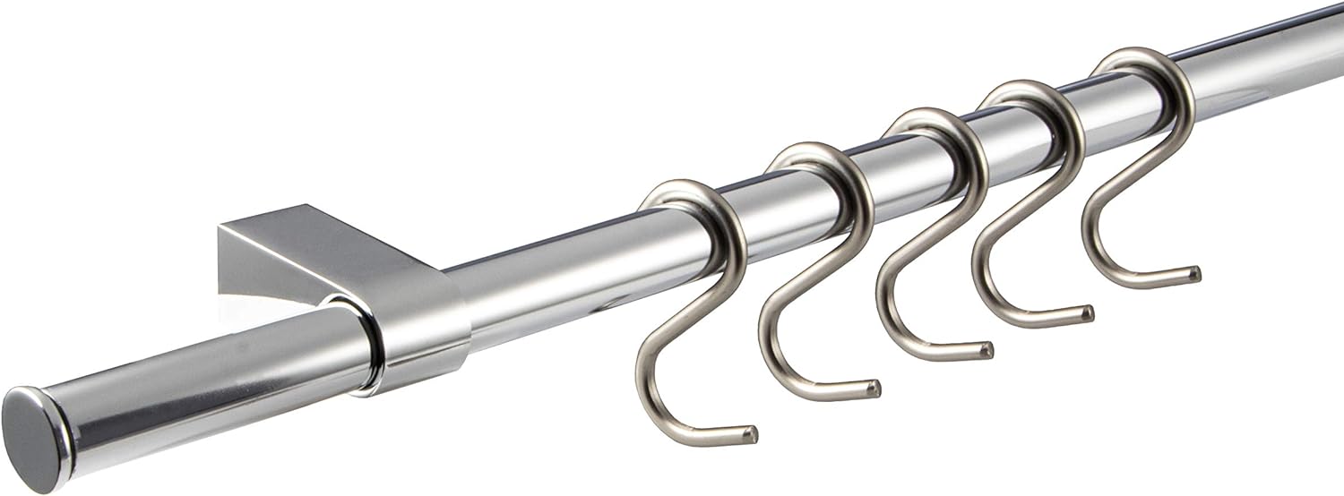 - Lieferumfang: 1 Stück Küchen-Stange - 2 Stück Relingrohr-Halterung "Modern" - 2 Stück Abdeck-Kappen "Modern" - 5 Stück S-Haken