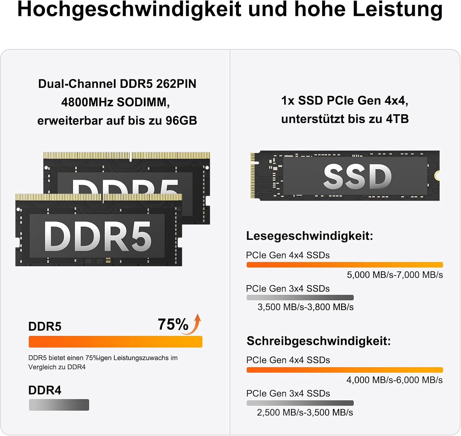 - Kompakte Grösse, riesiges Potenzial - Der A6 Mini-PC passt mit seinem 4 x 4-Zoll-Design mühelos in jeden Arbeitsbereich und bietet dabei eine aussergewöhnliche Leistung. Mit dem AMD Ryzen 7 6800 Chip kombiniert dieser schlanke Mini-PC aus einer