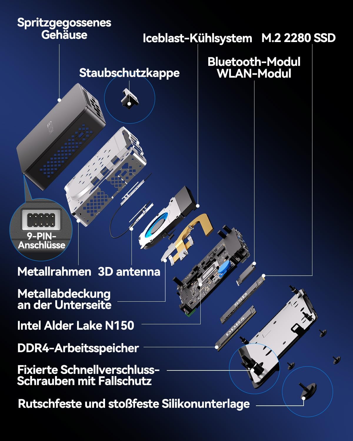 - UMFANGREICHE ERWEITERUNGSOPTIONEN--Der Air12 Lite Mini-PC bietet ein umfassendes Spektrum an Erweiterungsoptionen, einschliesslich Videoanschlüssen für hochauflösende Ausgaben (1 x HDMI 2.0, 1 x DP 1.4), mehreren USB-Ports (2 x vordere USB 3.2 Gen1