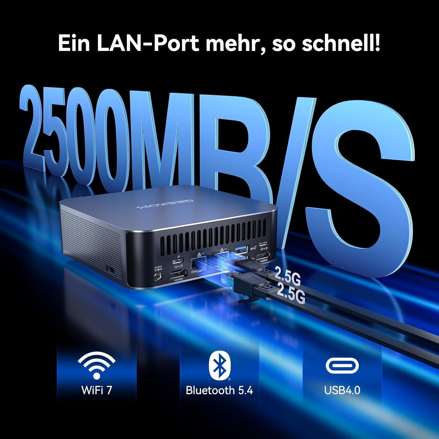 - [WiFi 7 im GEEKOM GT1 Mega] Erleben Sie drahtlose Highspeed-Performance mit 320 MHz Kanalbandbreite, Multi-Link-Technologie und 4K-QAM. Bis zu 5,8 Gbit/s für unterbrechungsfreies 8K-Streaming, Cloud-Gaming in Echtzeit und AR-Anwendungen. Die