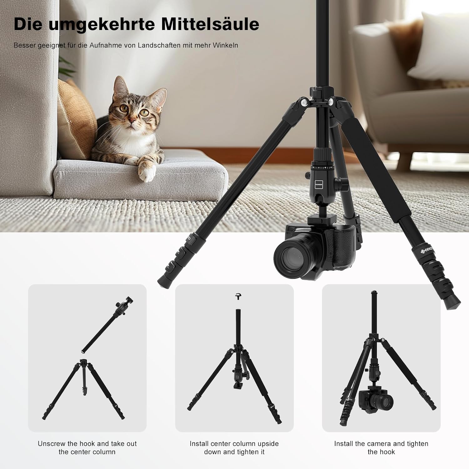 - 【Kompatibilität und Multifunktion】1/4 "Schnellwechselplatte, geeignet für verschiedene Arten von Kameras und Geräten mit Schraubenlöchern. Die Mittelsäule kann für Aufnahmen mit geringem Winkel und Makroaufnahmen invertiert werden. Mit einem