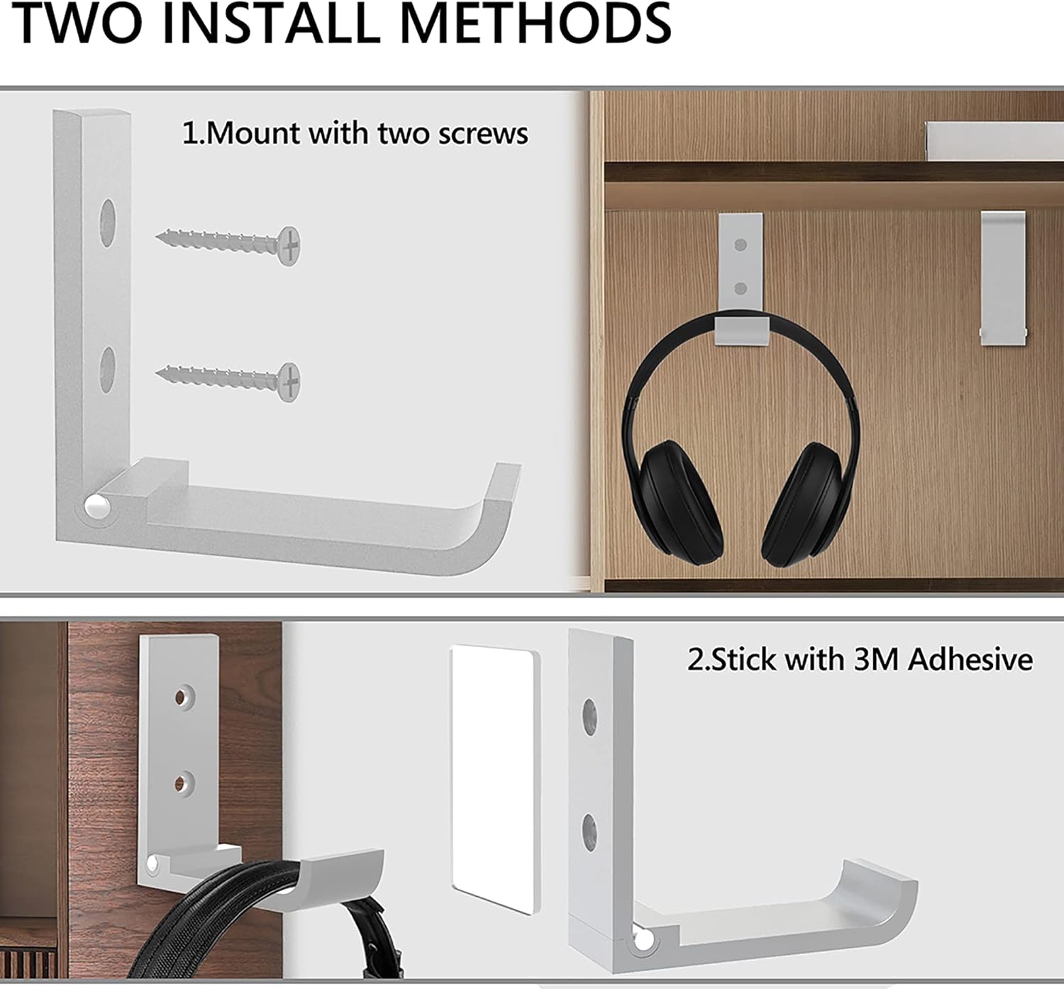 • Methods to install: Holds securly side of your desk / wall / table / Board, using strong 3M VHB two-sided tape or Fix on with screws.