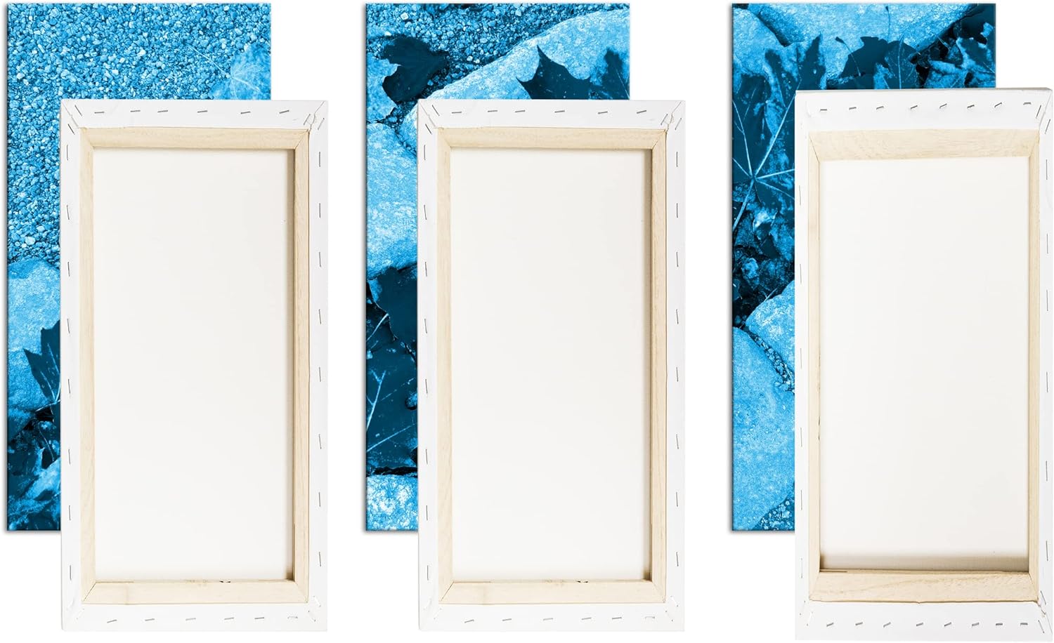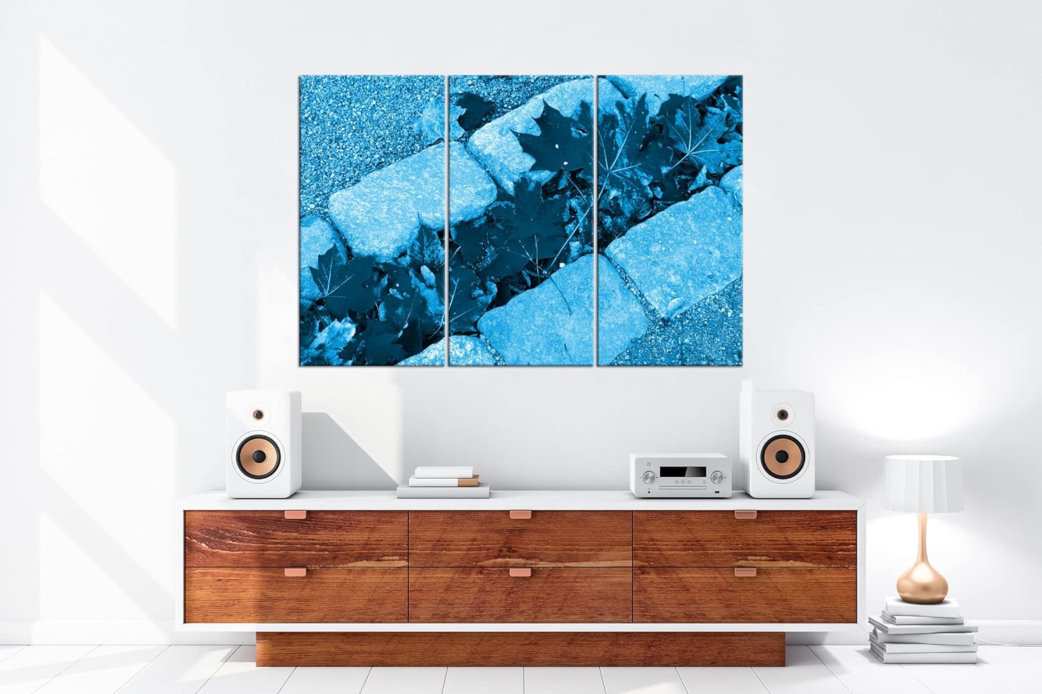 gelbe Ahornblätter auf dem Weg Format 120x80 3Teilig Effekt: Monocrome Blau als Leinwandbild, Motiv