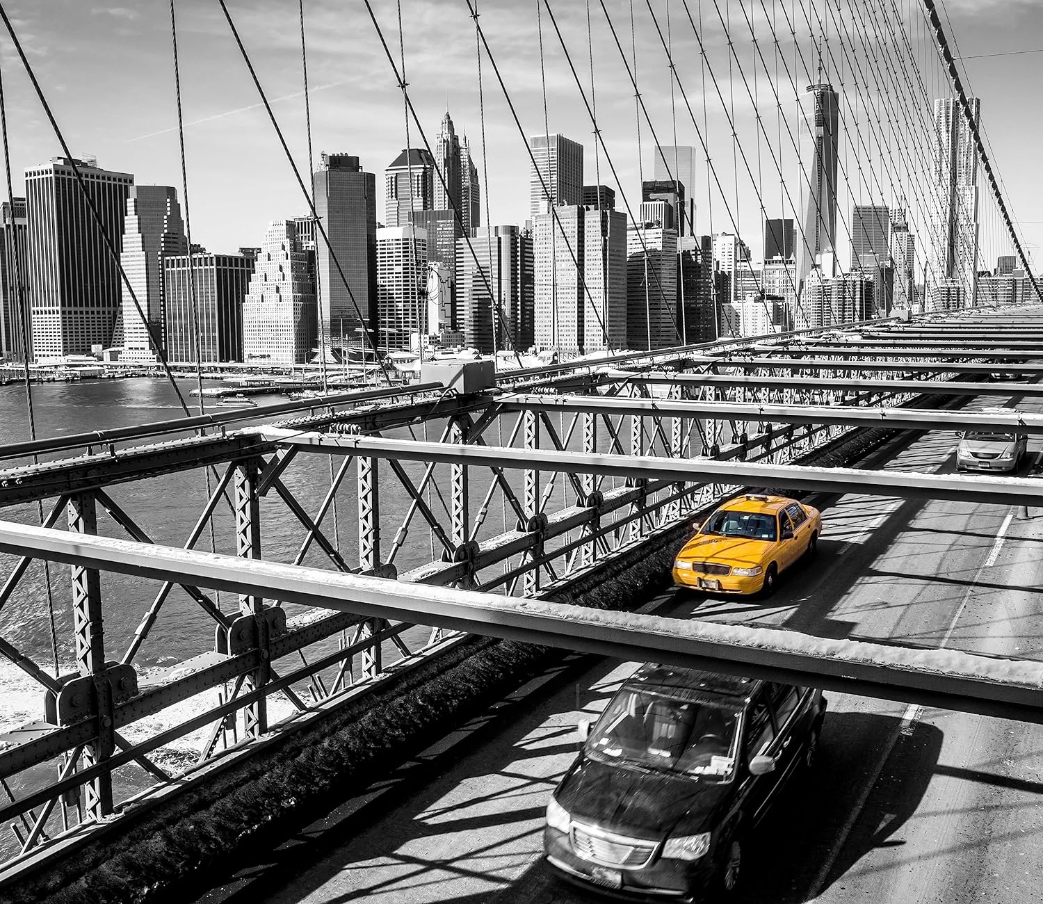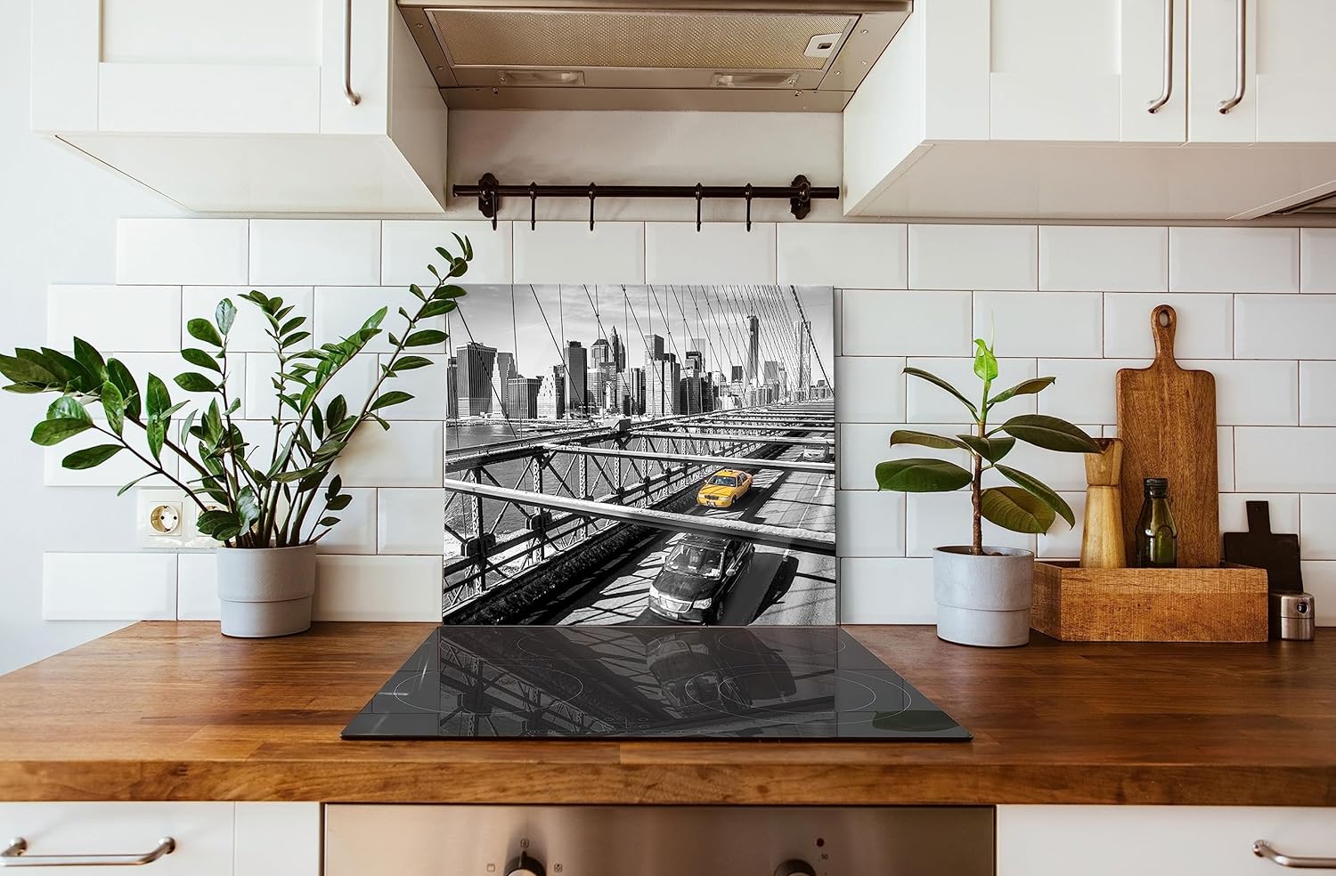 Gelbes Taxi in New York auf Brücke Herdabdeckplatte & Spritzschutz aus Echtglas | Für Herd-Kochfelde