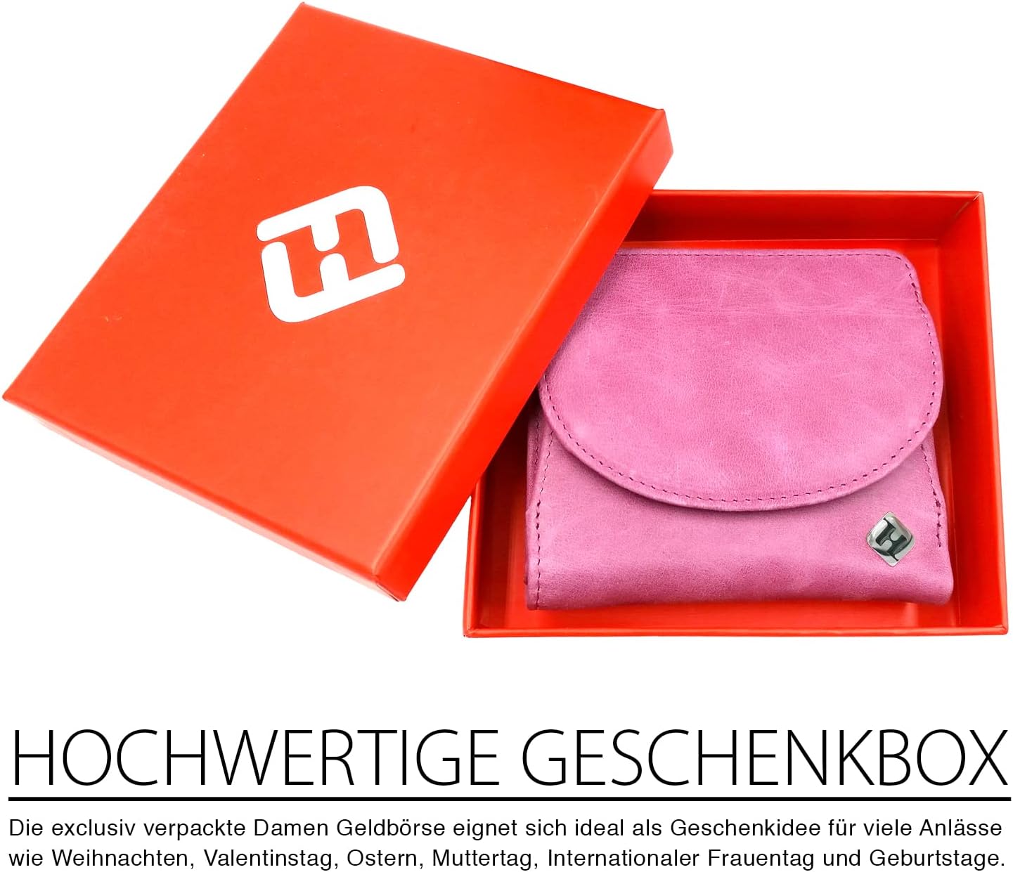 - ✓ KLEIN & KOMPAKT – Eine Geldbörse, die in jede Lieblingstasche passt. Ein wahrer Hingucker und Handschmeichler aus echtem, weichen Vintage Leder. Masse: 10,5 x 9,5 x 2,5 cm.