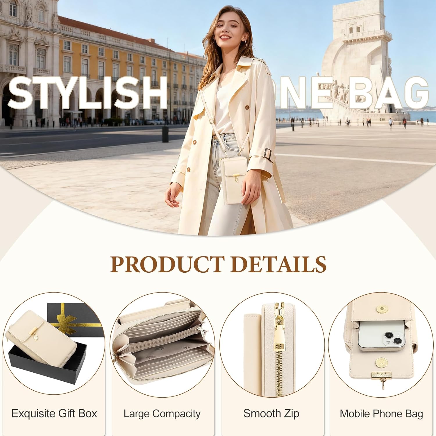• 🎁【Ideale Geschenk für Damen】Dieses vielseitige Damenbrieftasche kombiniert eine Geldbeutel mit Handyfach, Kleine Umhängetasche, und Reisepasshalter in einem ergonomischen Design, das sich dem Körper anpasst. Es ist aus hautfreundlichen