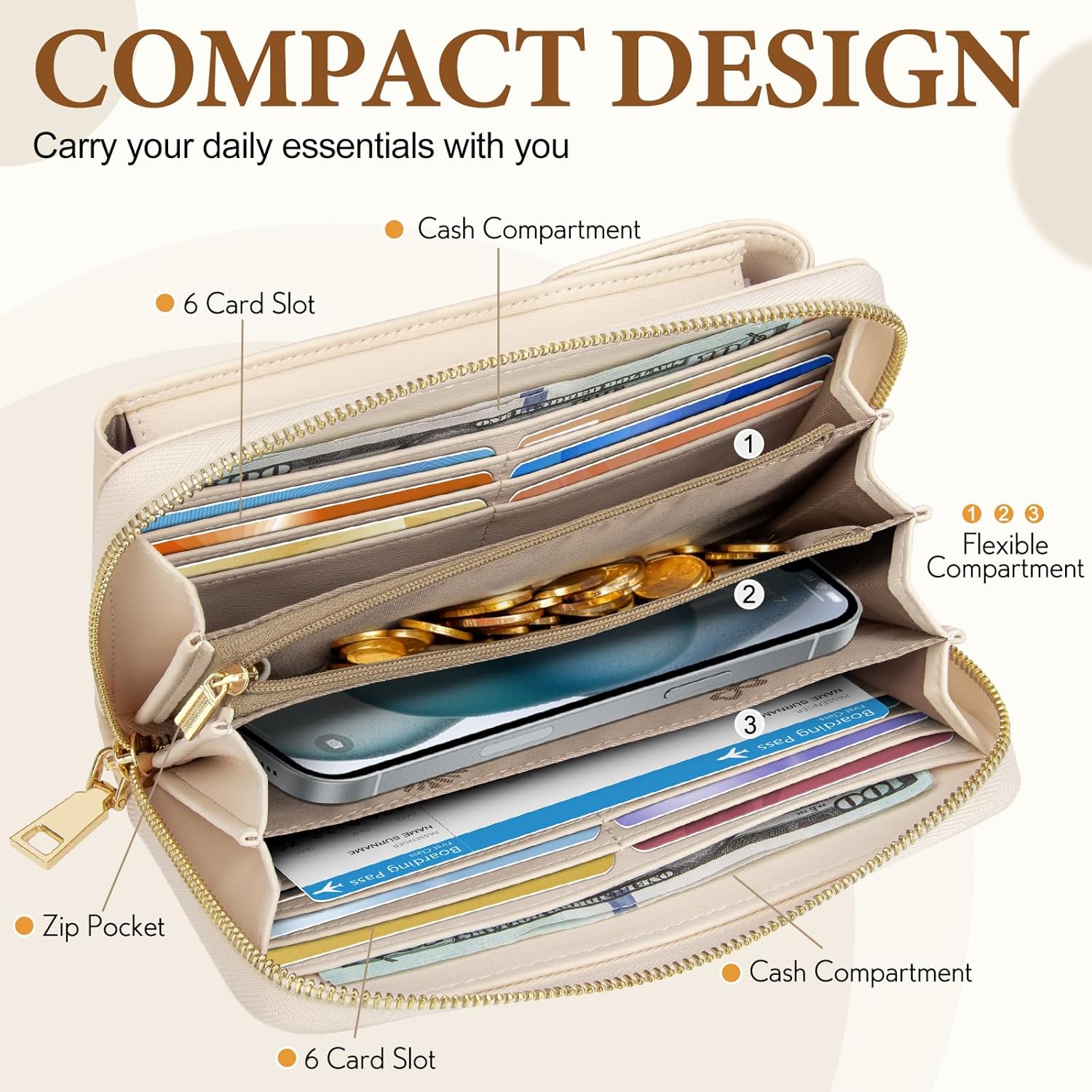 • 🎄【Geldbörse mit Handyfach zum Umhängen】Die ENONEO Damen Handytasche verfügt über eine verbesserte RFID-Diebstahlschutztechnologie, 12 Kartenfächer, 5 Fächer, ein 7,2-Zoll-Handyfach und ein Münzfach mit Reissverschluss – reichlich Platz
