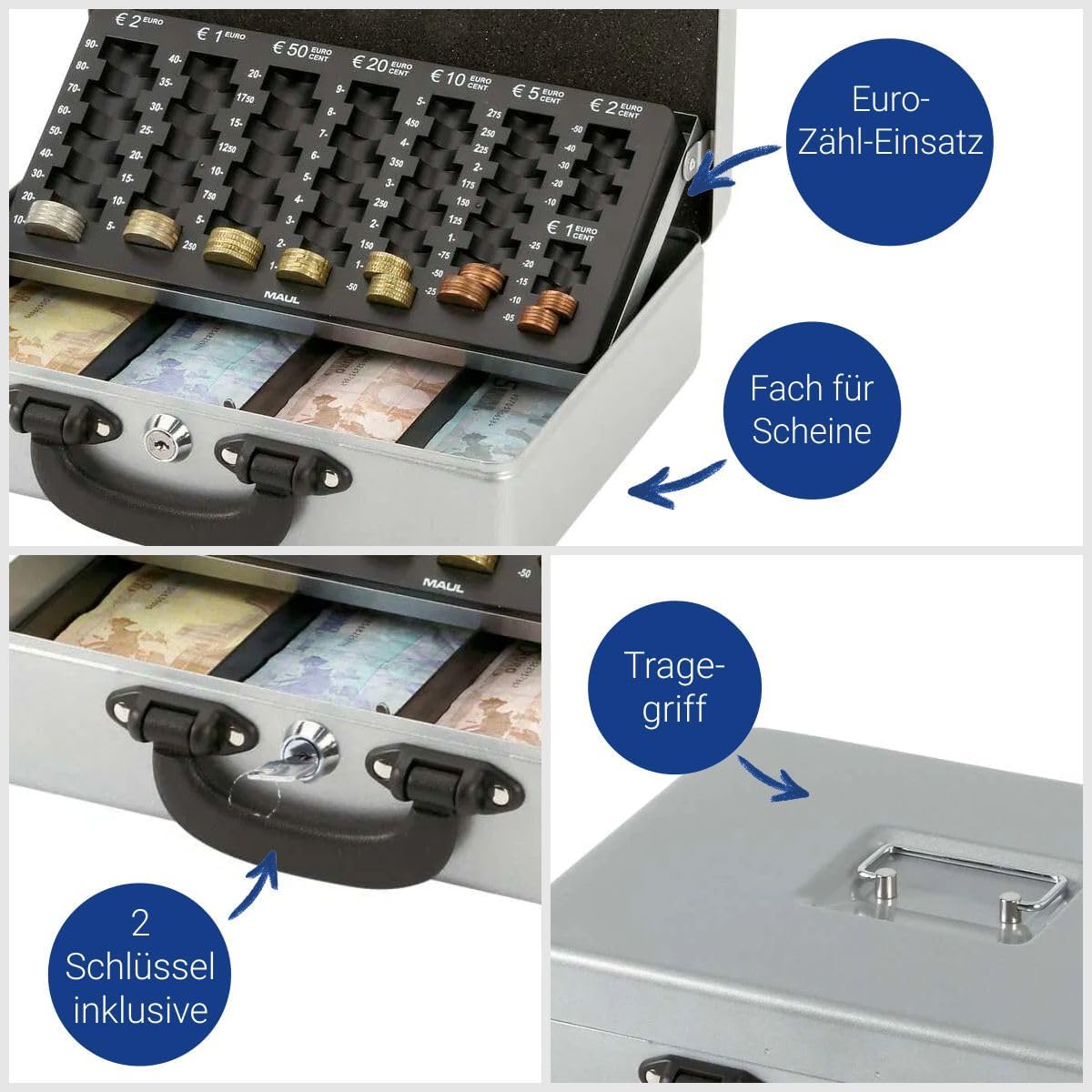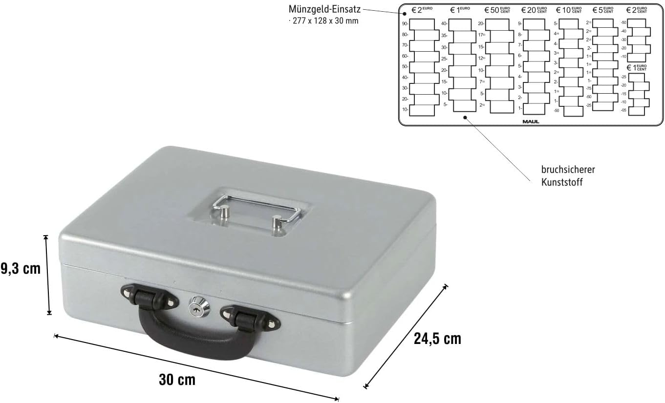 MAUL Geldkassette mit Zähleinsatz aus Stahl | abschliessbar | herausnehmbarer Einsatz | tragbare Kas