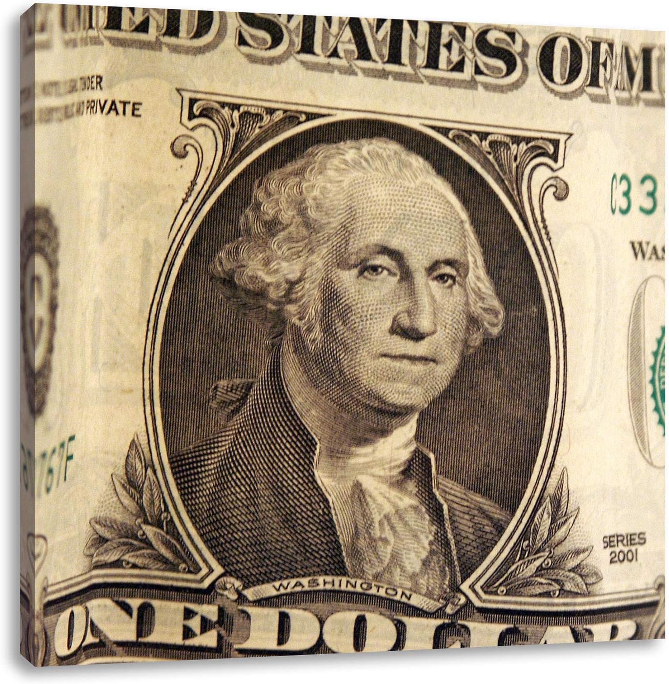 Geldschein Dollar, Format: 70x70 auf Leinwand, XXL riesige Bilder fertig gerahmt mit Keilrahmen, Kun