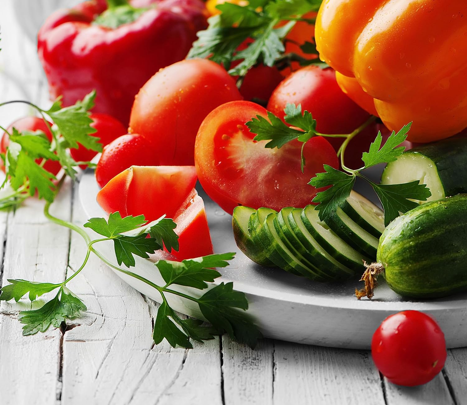 Gemüseteller Herdabdeckplatte & Spritzschutz aus Echtglas | Für Herd-Kochfelder | 60x52 cm