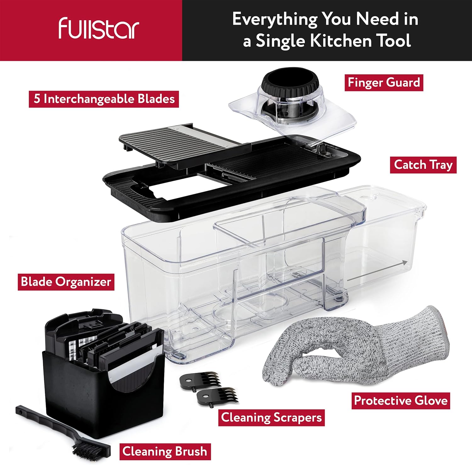 • Gemüseschneider Mandoline Gemüsehobel Gemüse Schneider Gurkenhobel Zwiebelschneider Kartoffelschneider Obstschneider Reibe für Gemüse und Käse Julienneschneider (Alles-in-1 Schwarz)