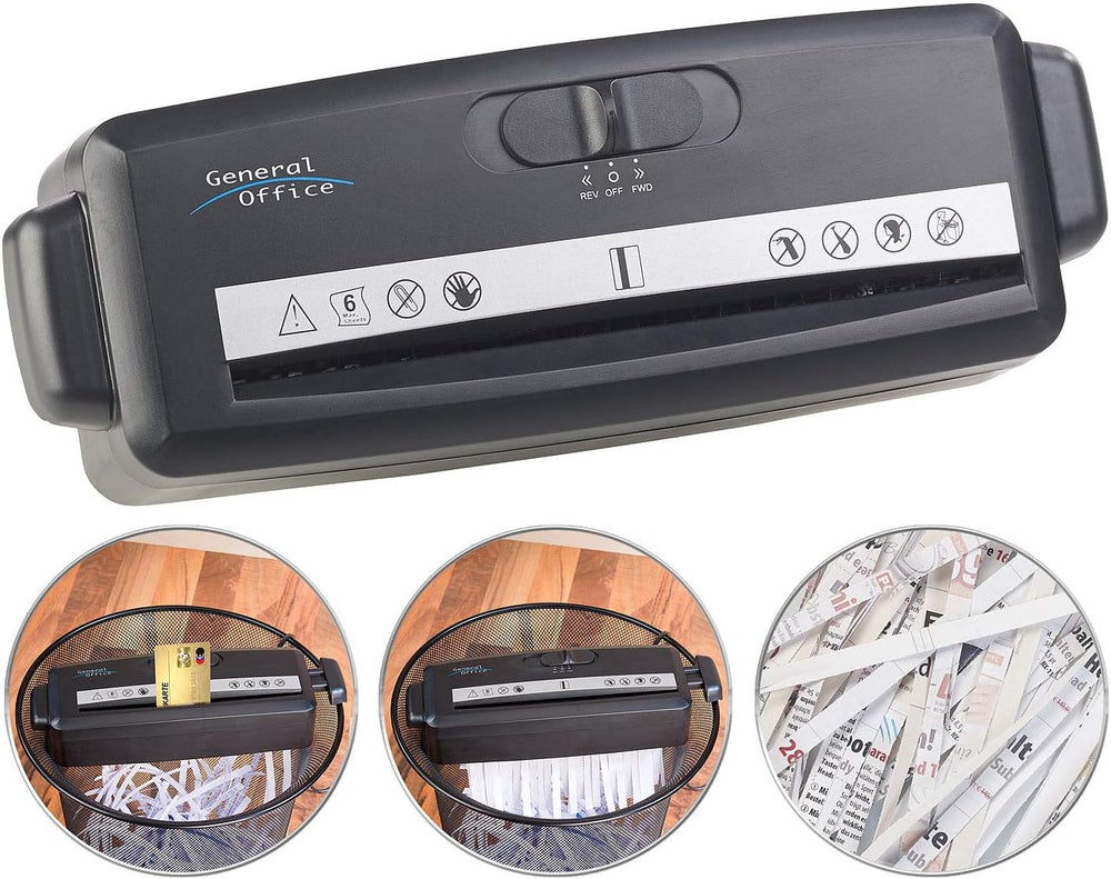 - Papierkorbaufsatz-Aktenvernichter für bis zu 6 Bögen DIN A4 plus Scheck-Karten • Masse: ca. 305 x 60 x 100 mm