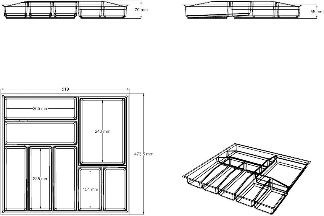 Generic Lana Solution Besteckeinsatz für 60er Schublade, 473,5 mm x 519 mm, weiss