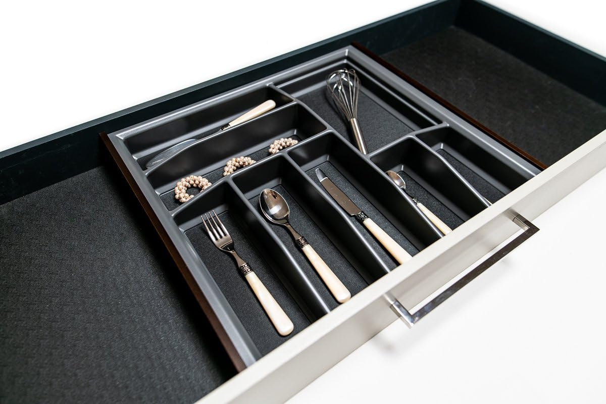 • Der Antirutschboden verhindert ein Verrutschen des Bestecks beim Öffnen und Schliessen der Schublade | Antirutschmatten zum Reinigen entnehmbar