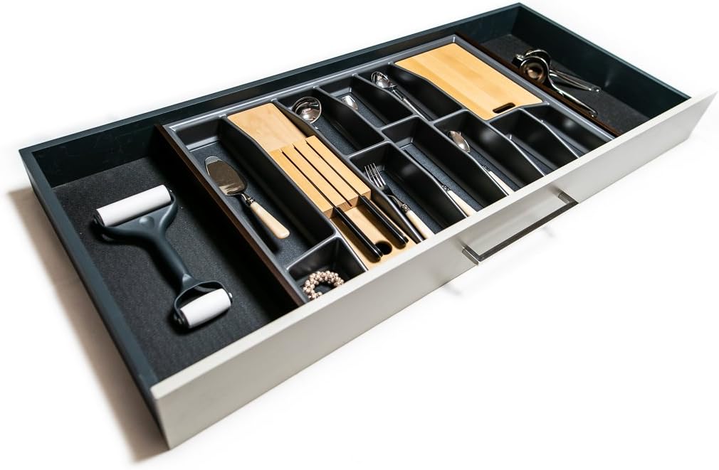 - Der Antirutschboden verhindert ein Verrutschen des Bestecks beim Öffnen und Schliessen der Schublade | Antirutschmatten zum Reinigen entnehmbar