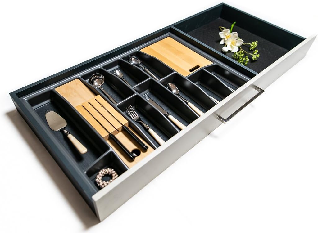 - Der Antirutschboden verhindert ein Verrutschen des Bestecks beim Öffnen und Schliessen der Schublade | Antirutschmatten zum Reinigen entnehmbar