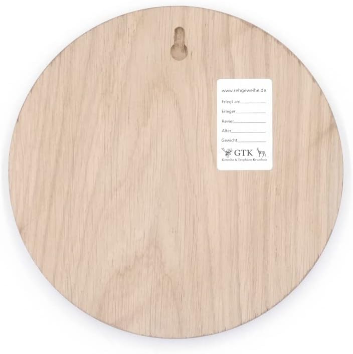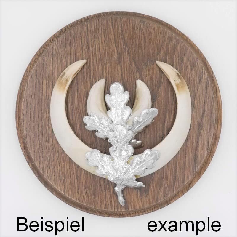- 5 Stück wunderschöne sehr hochwertige neue Trophäenschilder, rund in Eiche braun für Wildschwein Keilerwaffen Trophäen in Spitzenqualität; Rückseite mit eingefräster Nut als Aufhänger und ein Etikett zum eintragen der Daten zur Trophäe (Erlegt