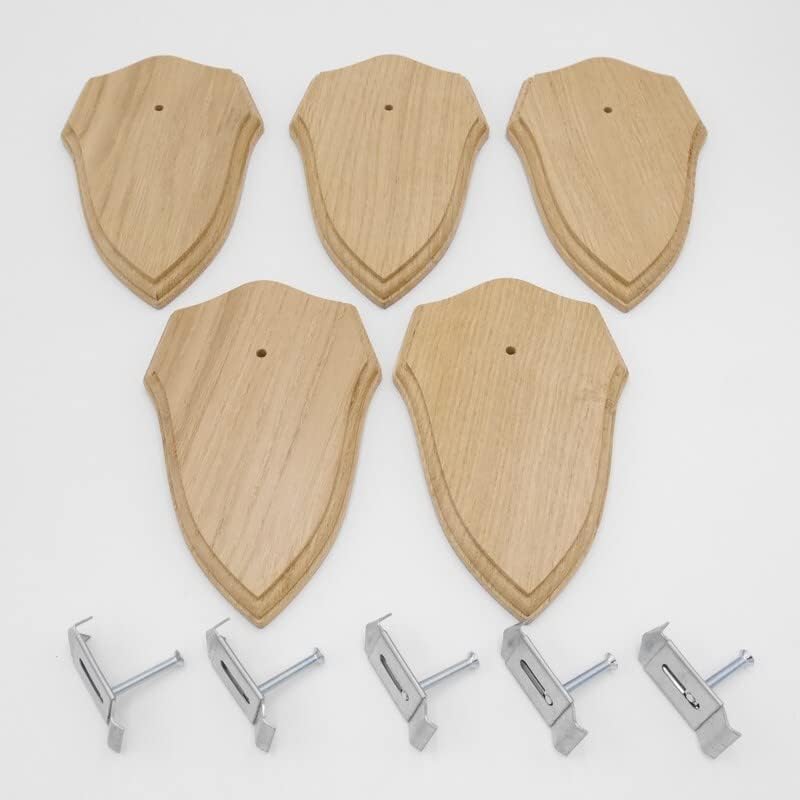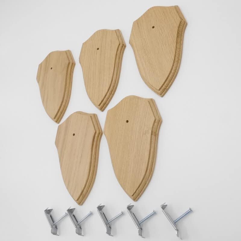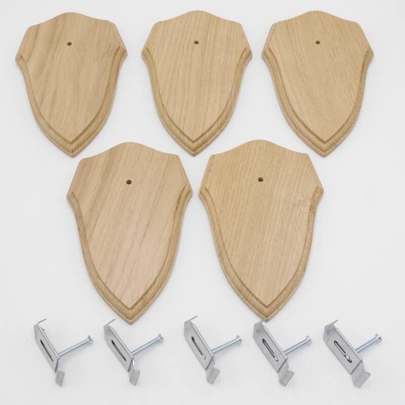 - 5 Stück wunderschöne neue Trophäenschilder in Wappenform für Rehgeweihe aus massiven Eichenholz in Eiche hell
