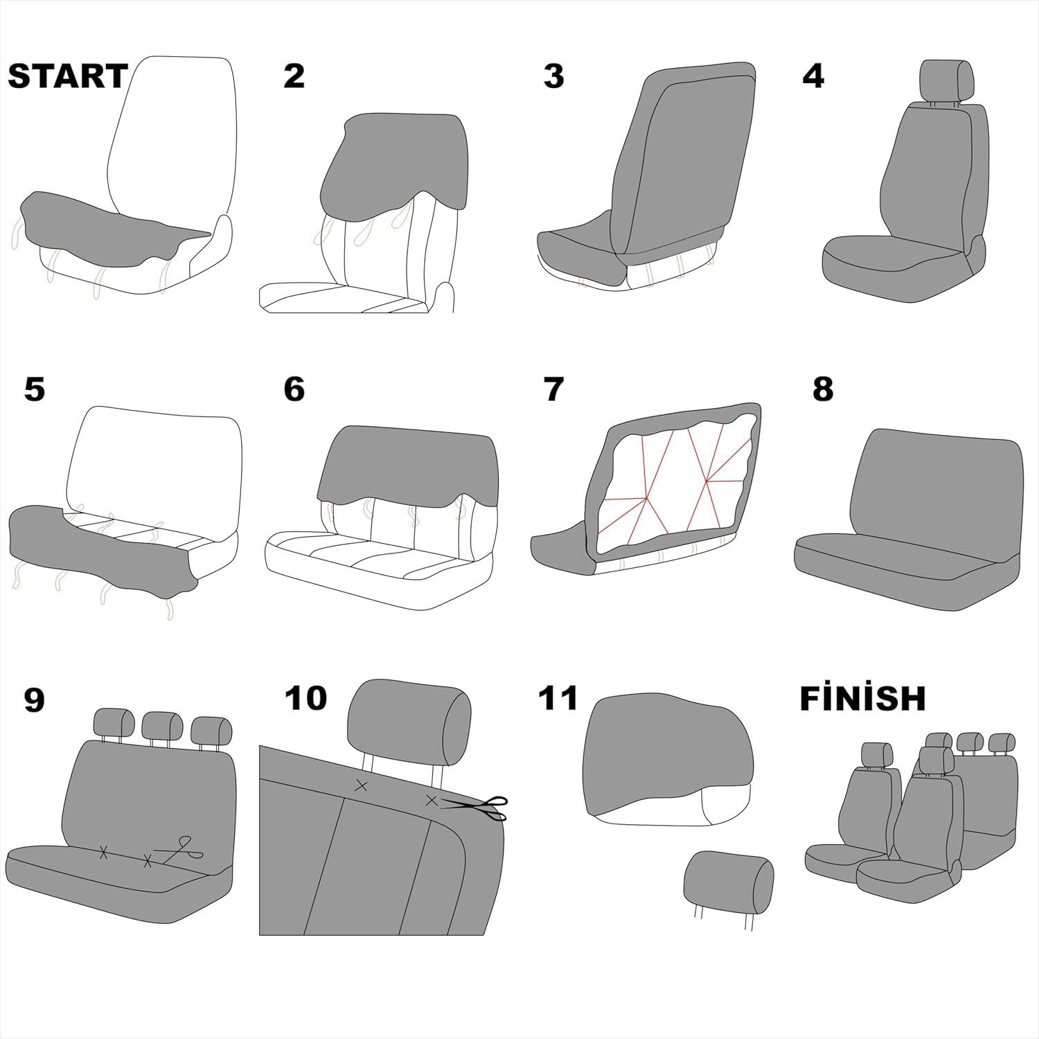 • Paketinhalt: 2x Vordere Sitze Sitzbereich 2x Vordere Sitze Rückenbereich 5x Kopfstützenbezug 1x Rücksitzbank Sitzbereich 1x Rücksitzbank Rücklehne