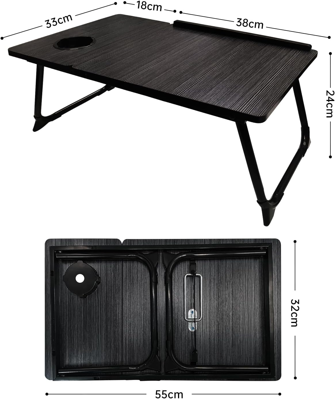 - 【Separater Desktop】:Die Gesamtgrösse des betttablett beträgt 56 x 33 x 24 cm, die einstellbare Desktop-Länge beträgt 38 cm, und es gibt genügend Platz, um den Computer zu platzieren, und der kleine Desktop ist 18 cm gross, auf dem Maus und