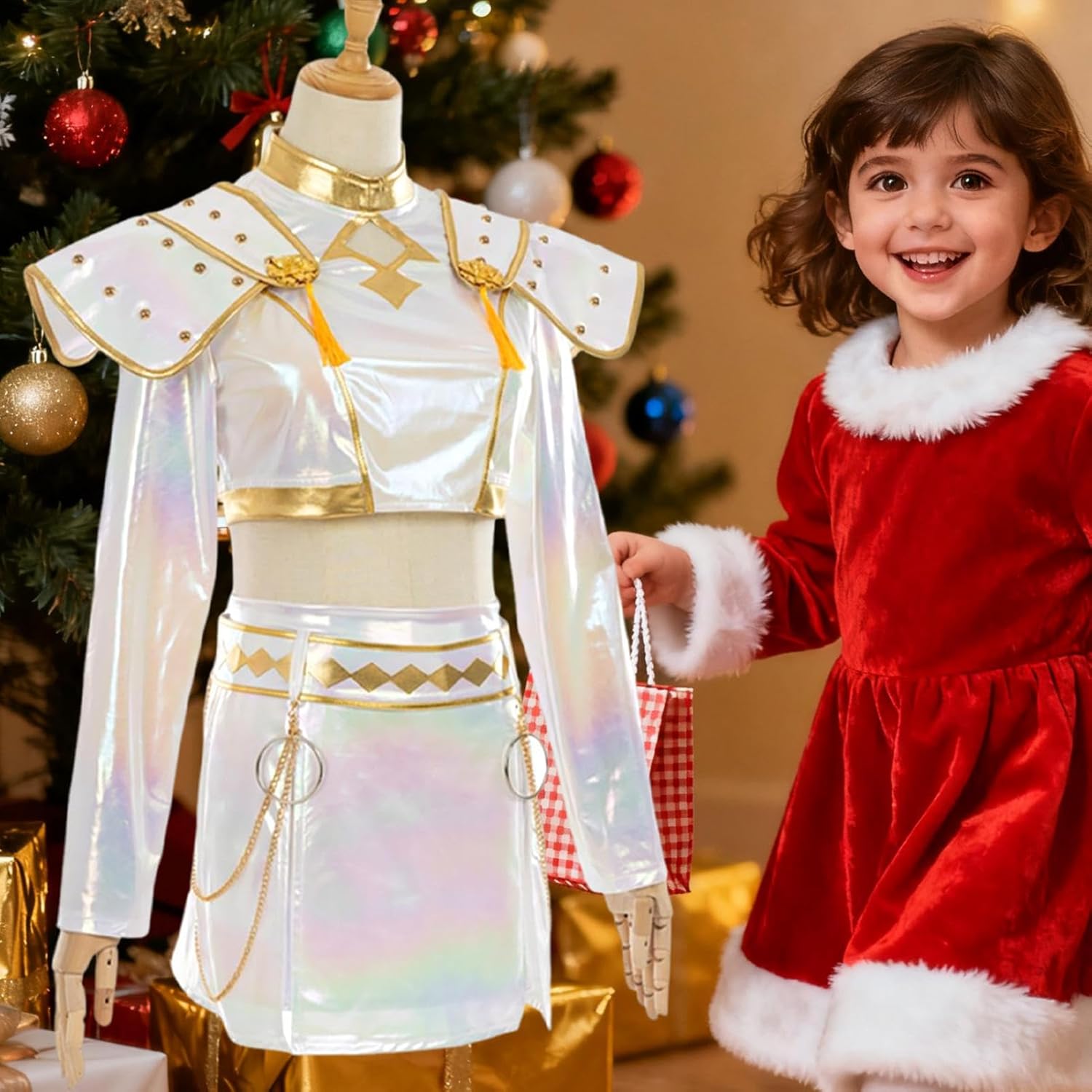 - Visual Effect Design: Kids Cosplay-Kostüm verwendet geschichtete Falten und reibungslose Verzierungen, um dynamische Light-Shadow-Interaktionen zu verstärken und auffällige visuelle Verschlüsse für Geburtstagsfeiern, Cosplay-Konventionen oder