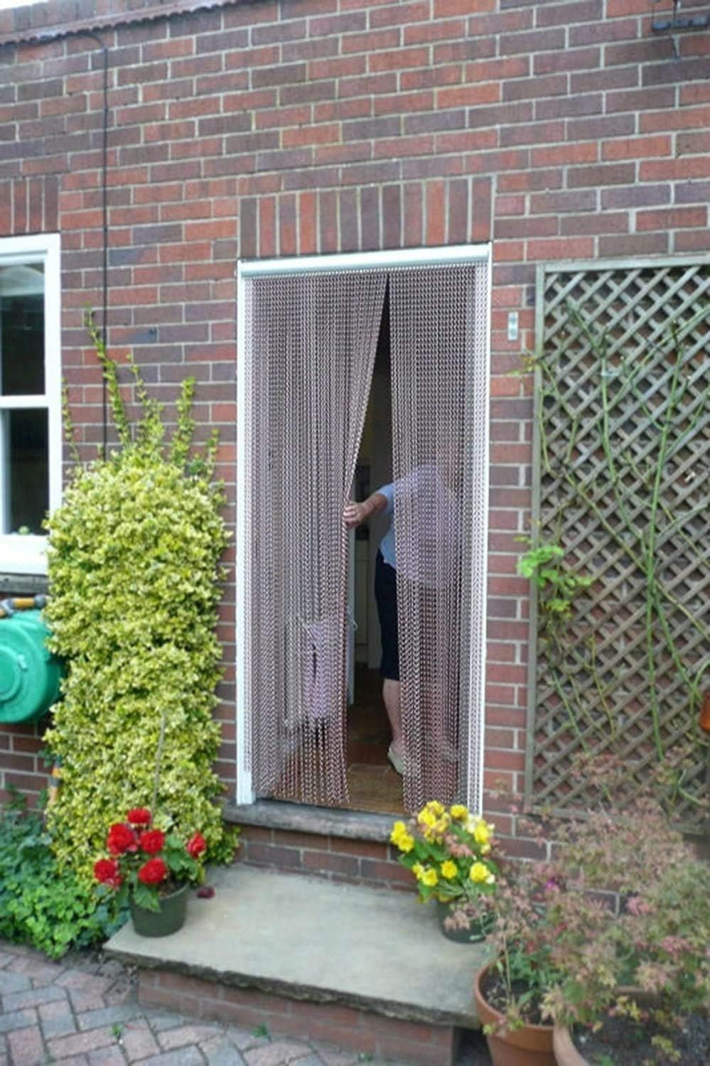 - Dieser schöne Aluminiumkettentürvorhang besteht aus eloxiertem Aluminium für Haltbarkeit mit einer glatten, farbechten Oberfläche mit Korrosionsschutz. Hängt an einer Metallschiene.