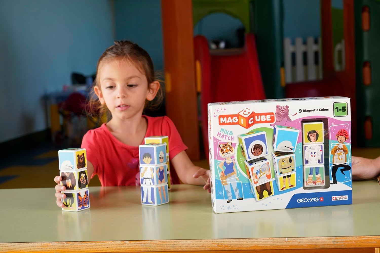 - Dreidimensionale Konstruktionen: Dank des Magnetismus implementiert Geomag Magicube die Kategorie Konstruktion, die solide dreidimensionale Konstruktionen durch eine einfache und kreative Spielaktivität ermöglicht