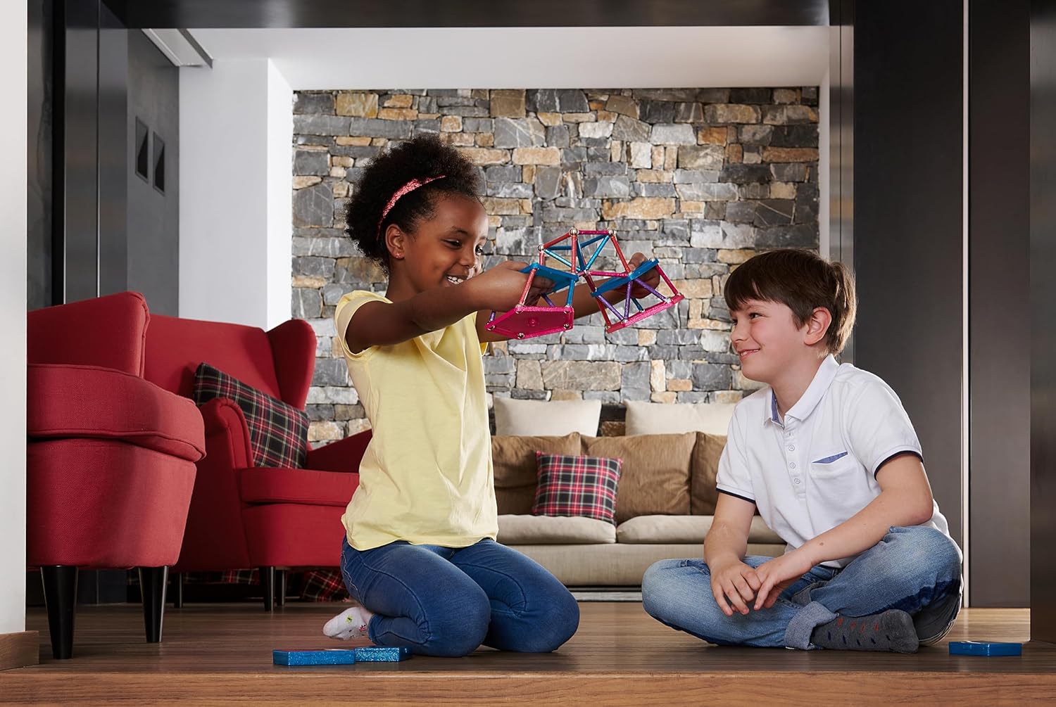 - In der Philosophie von Geomagworld steht der Magnetismus im Mittelpunkt: Das Spielen mit unterhaltsamen und herausfordernden Bauplattformen fördert das Lernen, das logische Denken und die Kreativität