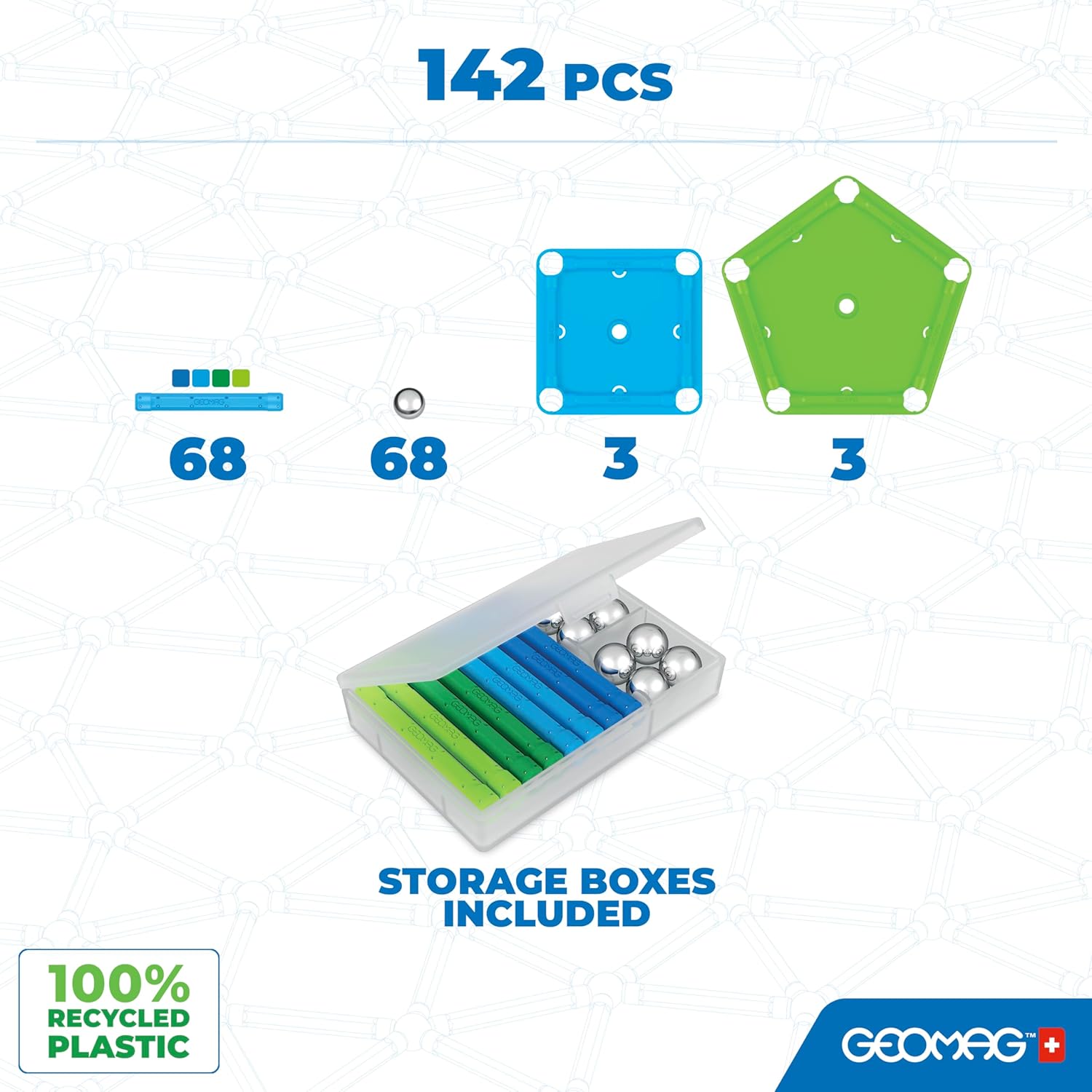 Geomag Classic - 142 Teile - Magnetisches Konstruktionsspielzeug für Kinder - Green Line - Lernspiel